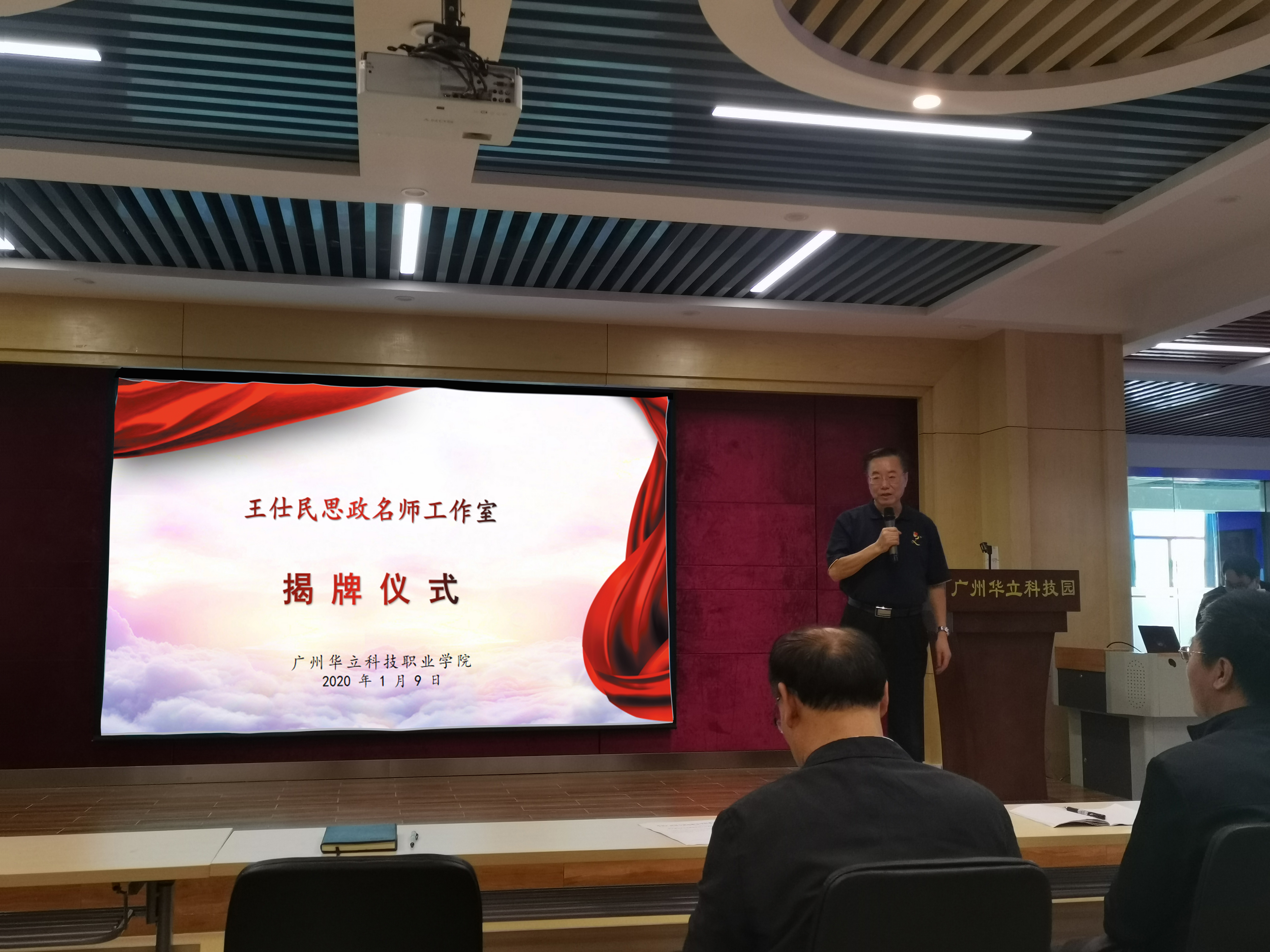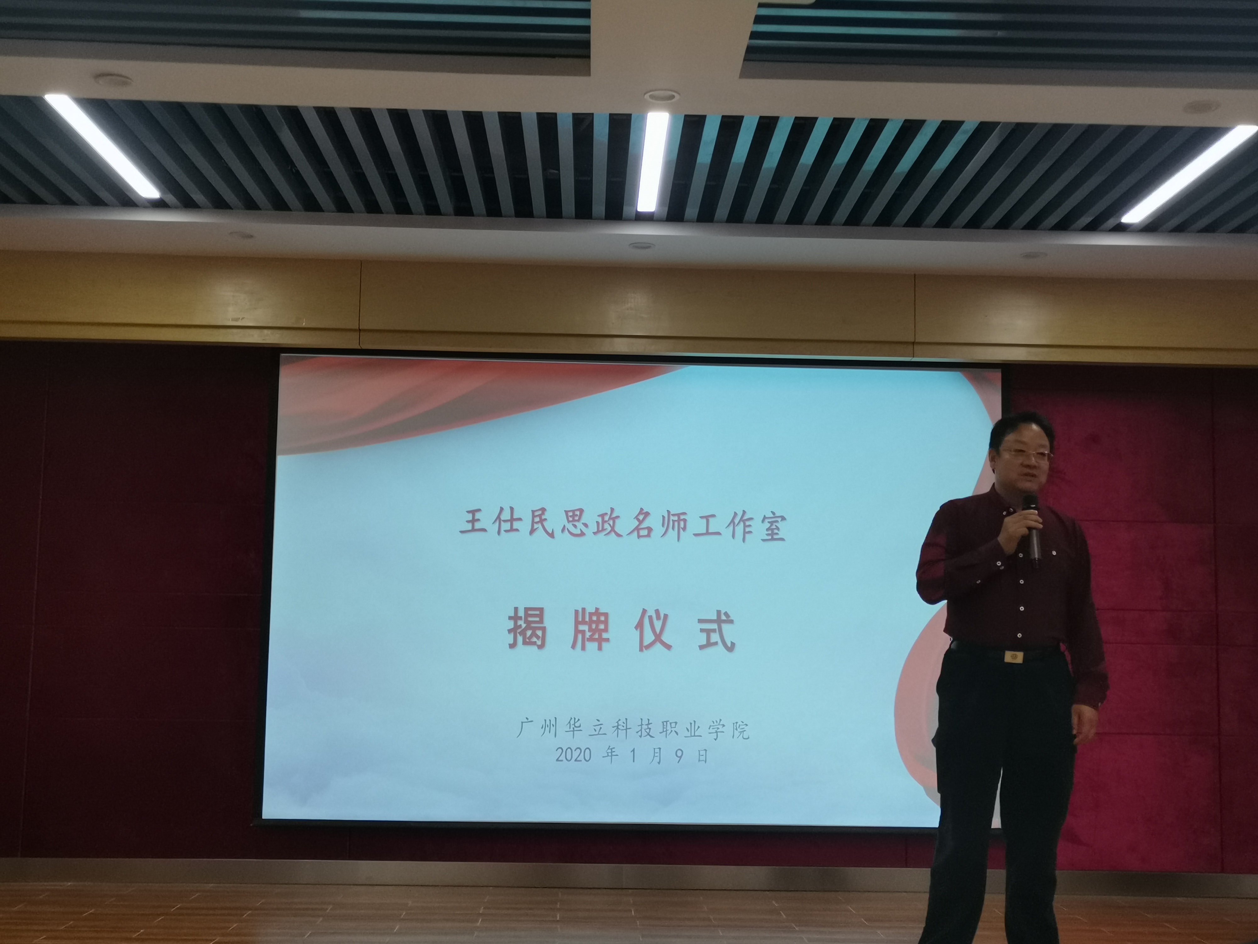 1月9日下午,廣州華立科技職業(yè)學(xué)院王仕民思政名師工作室授牌儀式在科技樓舉行。學(xué)校高度重視此次活動,校黨委書記林偉健、黨委副書記高堯來以及馬龍海、馬俊、易健民等學(xué)校領(lǐng)導(dǎo)出席揭牌儀式?;顒佑尚|h委委員、副校長馬俊主持。學(xué)校中層干部、黨務(wù)干部、全體思政教師、名師工作室領(lǐng)銜人及工作室成員參加此次活動。