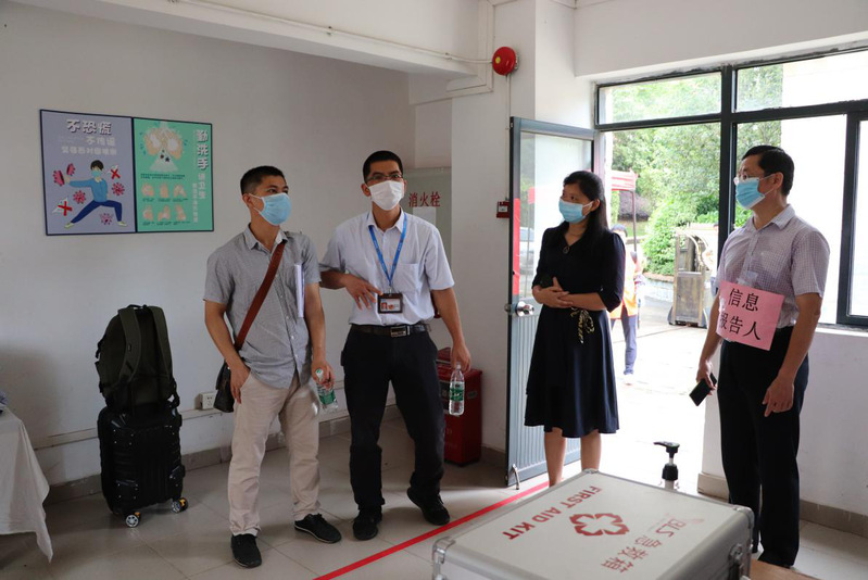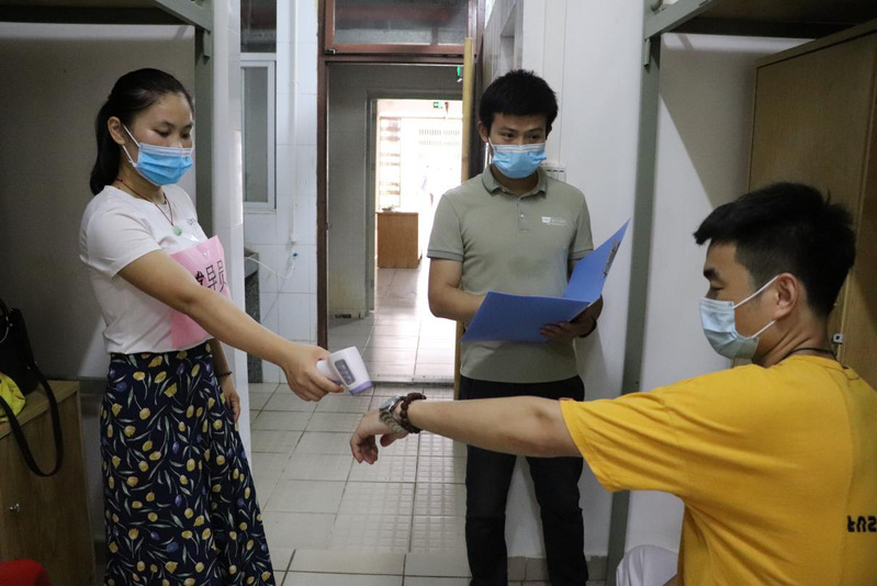 輔導(dǎo)員在宿舍為學(xué)生做晨檢