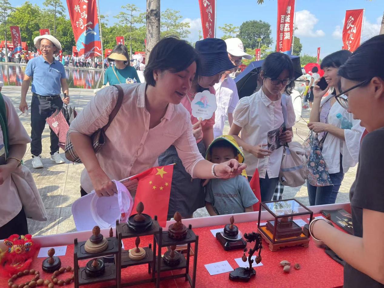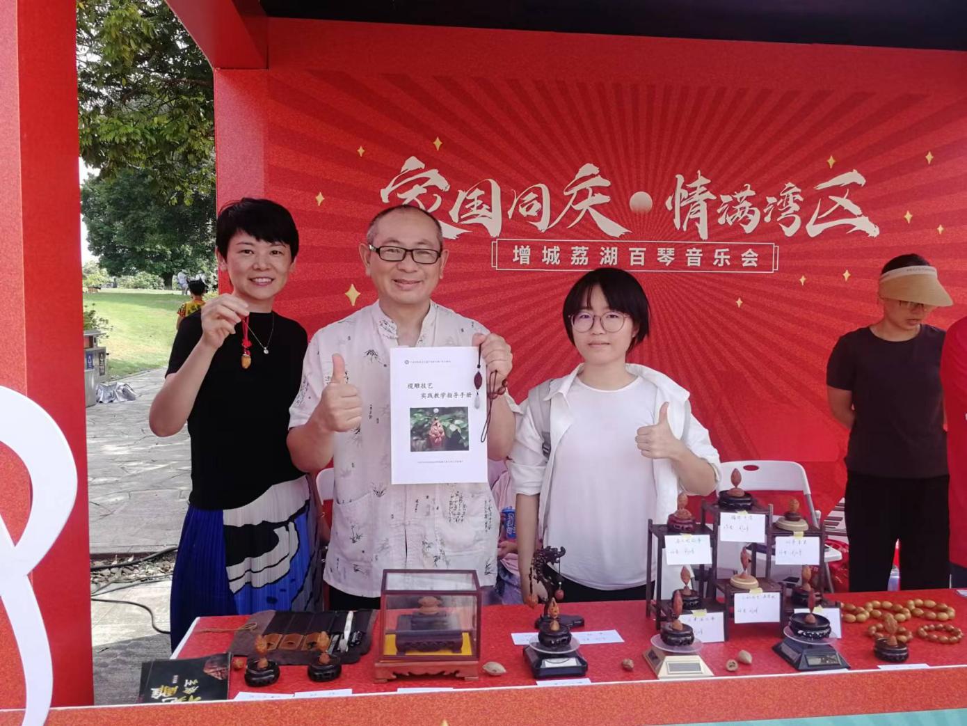 9月29日上午,“家國同慶,情滿灣區(qū)”荔城荔湖百琴音樂會(huì)在廣州市增城區(qū)荔湖廣場開幕。本次音樂節(jié)為期3天,由廣東省委宣傳部、廣東省文化和旅游廳、中央廣播電視總臺(tái)廣東總站指導(dǎo),廣州市委宣傳部、廣州市文化廣電旅游局、增城區(qū)人民政府主辦,增城區(qū)委宣傳部、增城區(qū)文化廣電旅游體育局、廣州珠江鋼琴集團(tuán)股份有限公司承辦。通過文藝匯演、開設(shè)圓桌故事會(huì)、特色文創(chuàng)產(chǎn)品、非物質(zhì)文化遺產(chǎn)展示等多種形式歌頌偉大祖國,與廣大市民群眾共度中秋佳節(jié)。我校欖雕協(xié)會(huì)師生參加并助力宣傳推廣國家級(jí)非物質(zhì)文化——廣州欖雕。