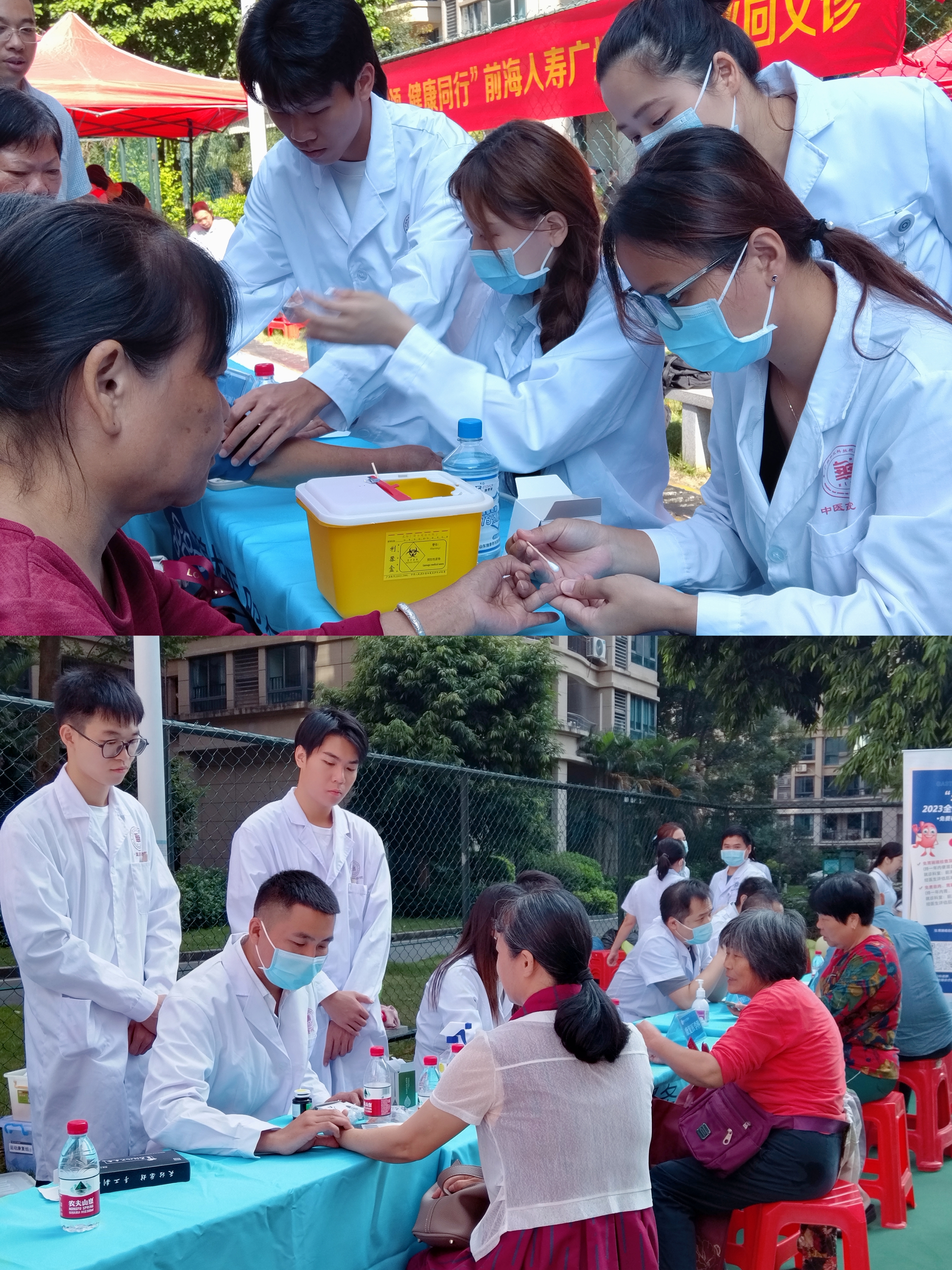 調(diào)研學(xué)習(xí)結(jié)束后,中醫(yī)藥學(xué)院師生聯(lián)合醫(yī)院專家團(tuán)隊(duì)到碧桂園豪園第二社區(qū)開展為群眾義診活動(dòng),圍繞“讓中醫(yī)走入千家萬(wàn)戶”為主題,開展量血壓、測(cè)血糖、健康推拿及“望聞問(wèn)切”的基本中醫(yī)理療咨詢和服務(wù)。