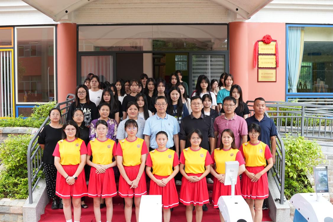 在師生們的見證下,學(xué)校陳顯強副校長、產(chǎn)教融合辦韋建林副主任、教育學(xué)院朱君副院長及華立獅寶寶黎瓔慧教學(xué)主任共同為廣州華立獅寶寶幼稚園“校企合作基地”、“實習(xí)實訓(xùn)基地”與“教師企業(yè)實踐流動站”揭牌。