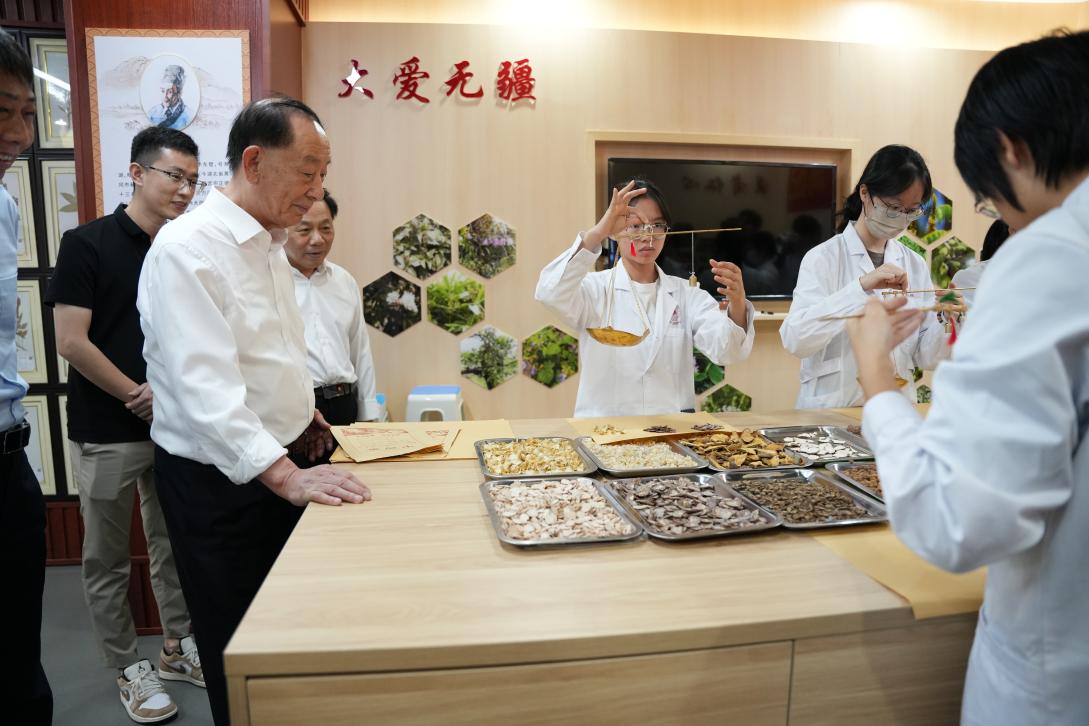 活動中,唐祖宣一行在學校有關(guān)負責人的陪同下參觀了中醫(yī)藥學院中藥標本館、中醫(yī)適宜技術(shù)實驗室、烹飪實操室等實訓場所,并于當天下午舉辦了“國醫(yī)大師之路”的專題講座。