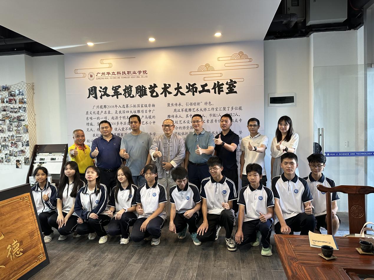 座談會后,黃勁勇副局長一行和增城區(qū)廣播電視大學(xué)師生一起到我校廣州欖雕中華優(yōu)秀傳統(tǒng)文化基地進(jìn)行實(shí)地考察,與基地教師和學(xué)生進(jìn)行了交流,深入了解基地欖雕教學(xué)開展情況,并對非遺進(jìn)校園建設(shè)的細(xì)節(jié)提出了建設(shè)性意見。