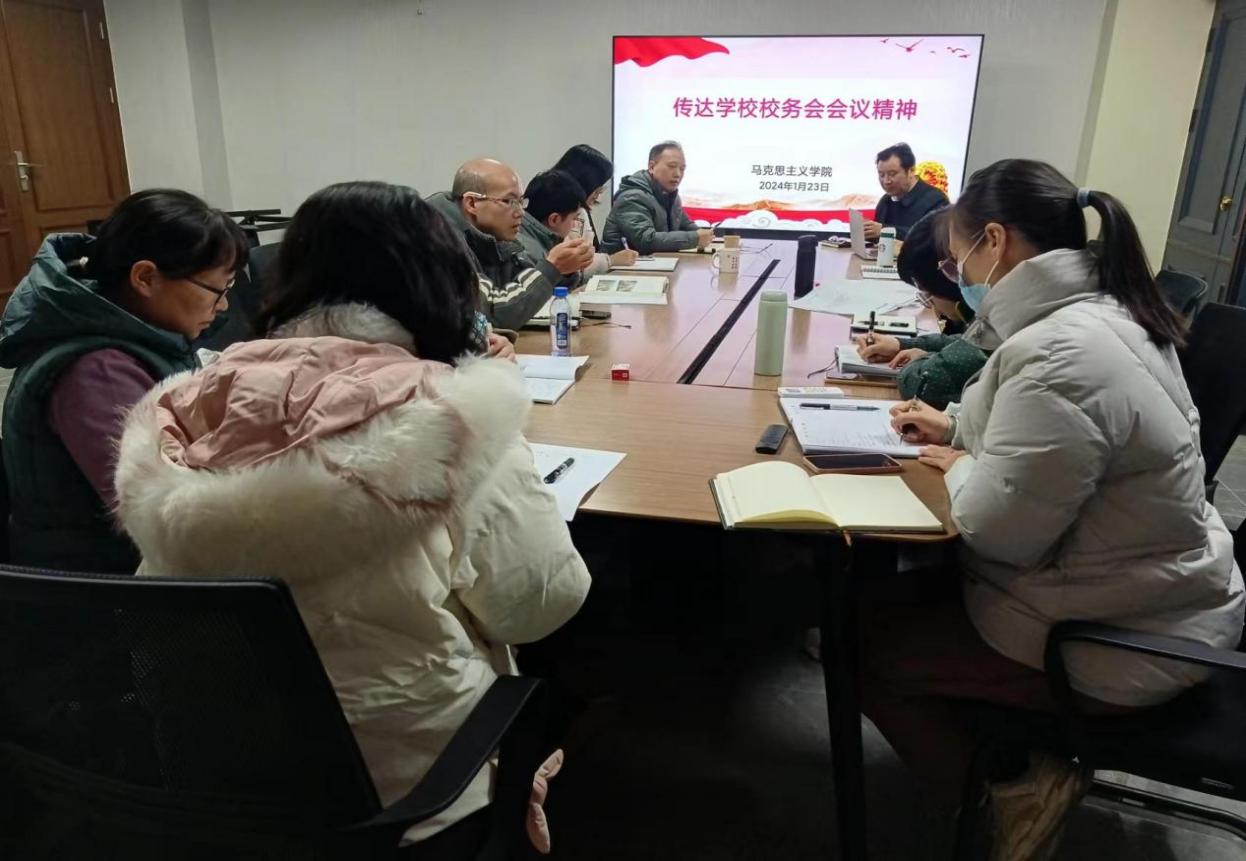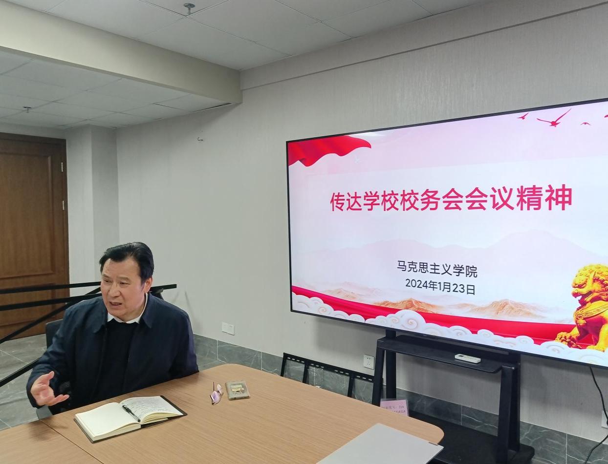 在傳達完學校校務會精神后,廖院長對馬克思主義學院期末的辦公室搬遷、學生成績錄入、資料歸檔、學院安全保衛(wèi)等工作提出了要求。他充分肯定辦公室搬遷工程的順利完成,同時對學院新聞稿的撰寫、修改、終審等環(huán)節(jié)進行了安排、優(yōu)化和調(diào)整,并詳細闡述了學院2024年上半年的工作規(guī)劃,重點強調(diào)了兩項任務,一是相關老師要利用假期做好參加全校公共基礎課教學能力比賽的準備工作,二是全體老師要做好3月份即將舉辦的“紀念習近平總書記3·18講話五周年座談會”的工作。最后,他提醒大家注意假期安全,并提前祝愿大家度過一個愉快的假期。