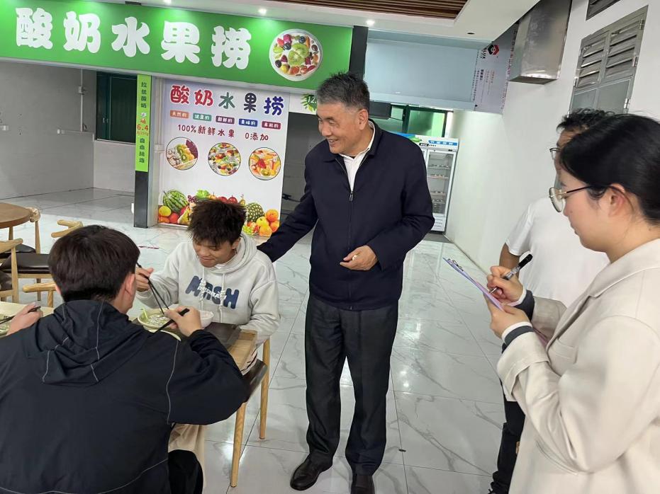 陳德清校長同食堂就餐的學(xué)生進行親切交流,詢問學(xué)生對食堂飯菜的價格、質(zhì)量、種類和食堂服務(wù)質(zhì)量等方面的意見和建議。