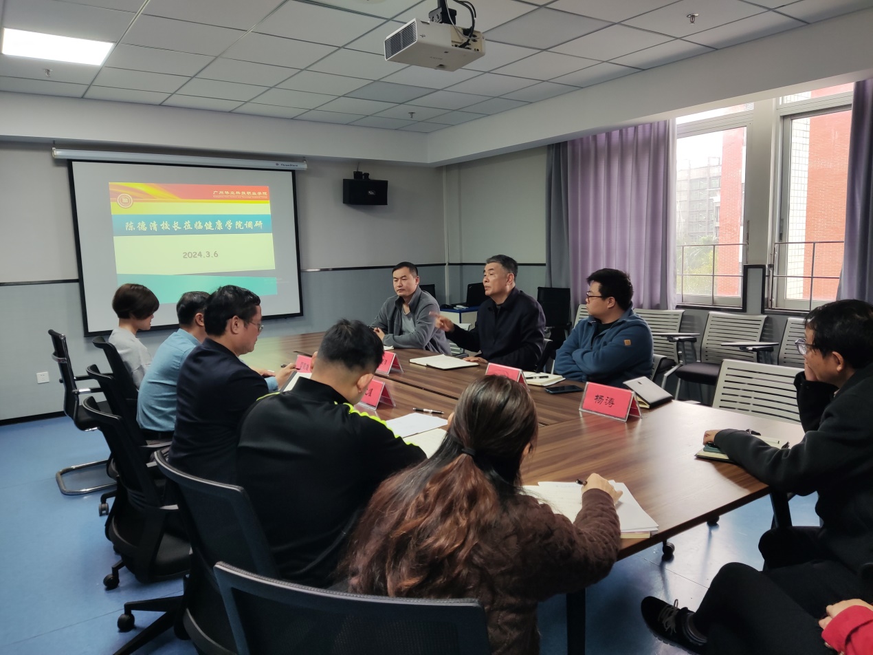 2024年3月6日上午,廣州華立科技職業(yè)學(xué)院校長(zhǎng)陳德清一行到健康學(xué)院考察調(diào)研。