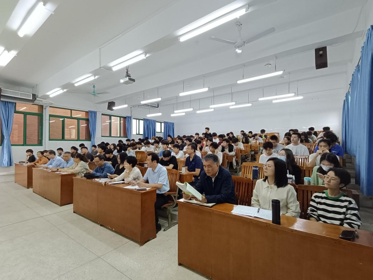 在評(píng)課座談環(huán)節(jié),陳德清校長(zhǎng)最后一個(gè)總結(jié)發(fā)言。首先,他說明了這次深入馬克思主義學(xué)院聽課評(píng)課、組織座談的目的是為了貫徹習(xí)近平關(guān)于加強(qiáng)學(xué)校思想政治理論課教學(xué)的指示精神,落實(shí)教育部下發(fā)的《普通高等學(xué)校馬克思主義學(xué)院建設(shè)標(biāo)準(zhǔn)(2023年版)》的相關(guān)要求,了解學(xué)校思想政治理論課教師的教學(xué)狀況,深化課堂教學(xué)改革,提高教學(xué)質(zhì)量。他對(duì)長(zhǎng)期在課堂一線講授思政課的全體教師表示深切的關(guān)懷與問候!對(duì)龍林、何楚婷兩位老師在教學(xué)展示中所表現(xiàn)出的專業(yè)素養(yǎng)、教學(xué)能力、教學(xué)效果和敬業(yè)精神給予了高度評(píng)價(jià)!