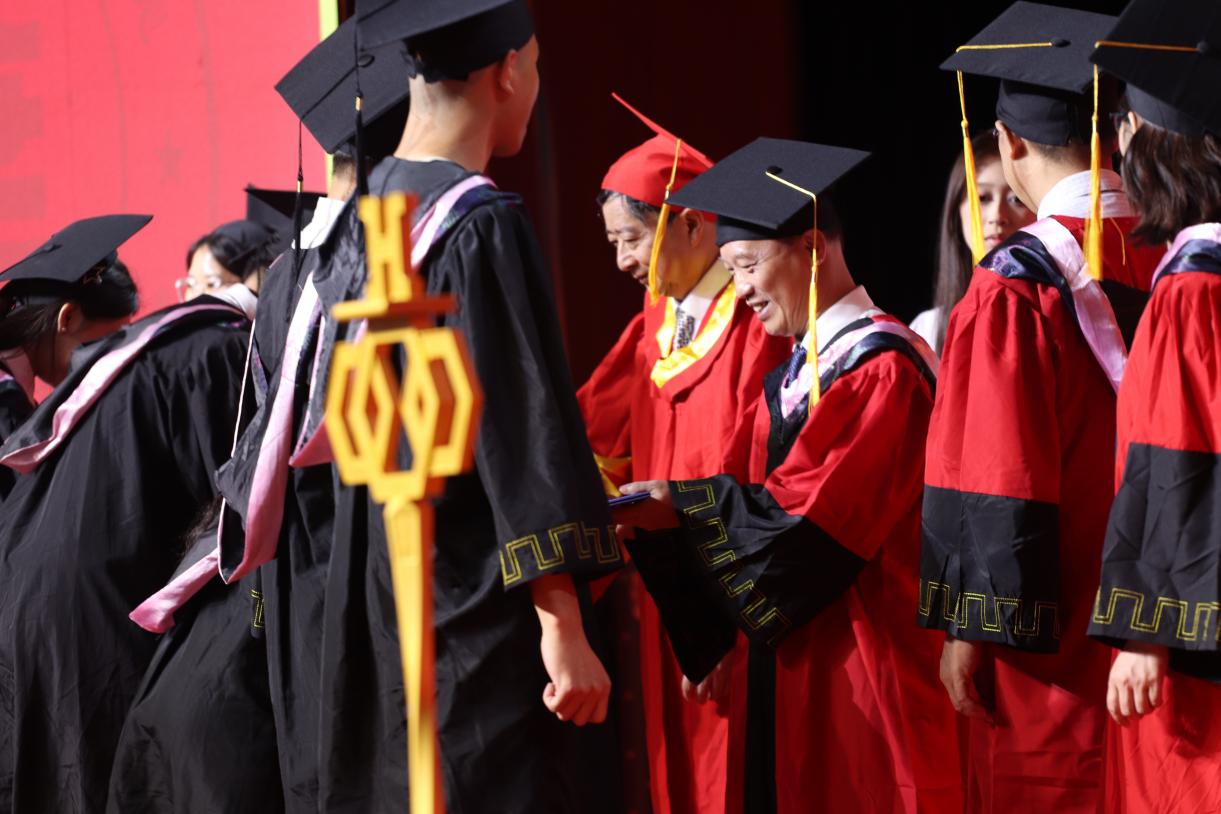 黨委書記陳良聲宣讀了優(yōu)秀畢業(yè)生表彰文件,易健民校長和陳良聲書記為優(yōu)秀畢業(yè)生頒發(fā)了證書并合影留念。