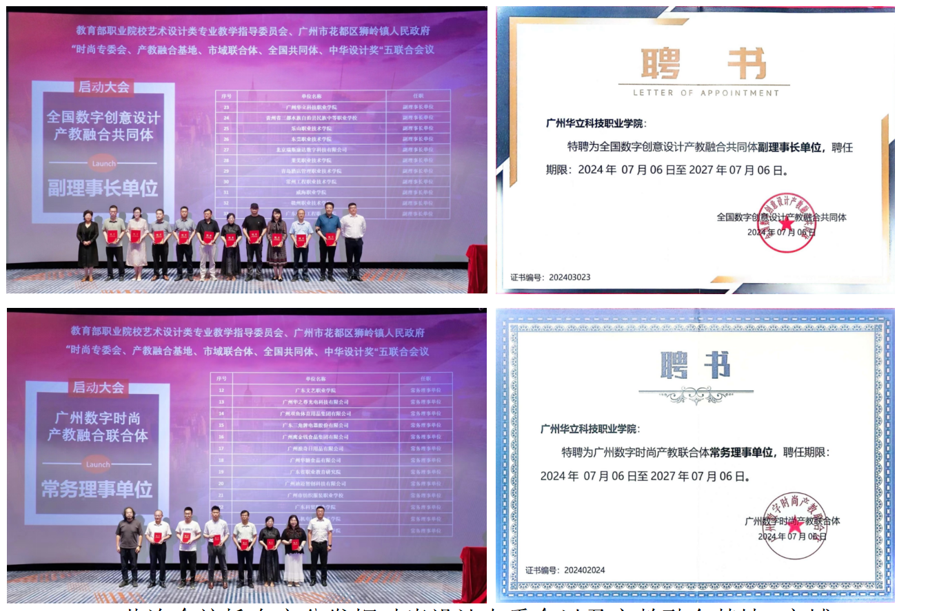 我校被聘任為“全國(guó)數(shù)字創(chuàng)意設(shè)計(jì)產(chǎn)教融合共同體副理事長(zhǎng)單位”“廣州數(shù)字時(shí)尚產(chǎn)教聯(lián)合體常務(wù)理事單位”。