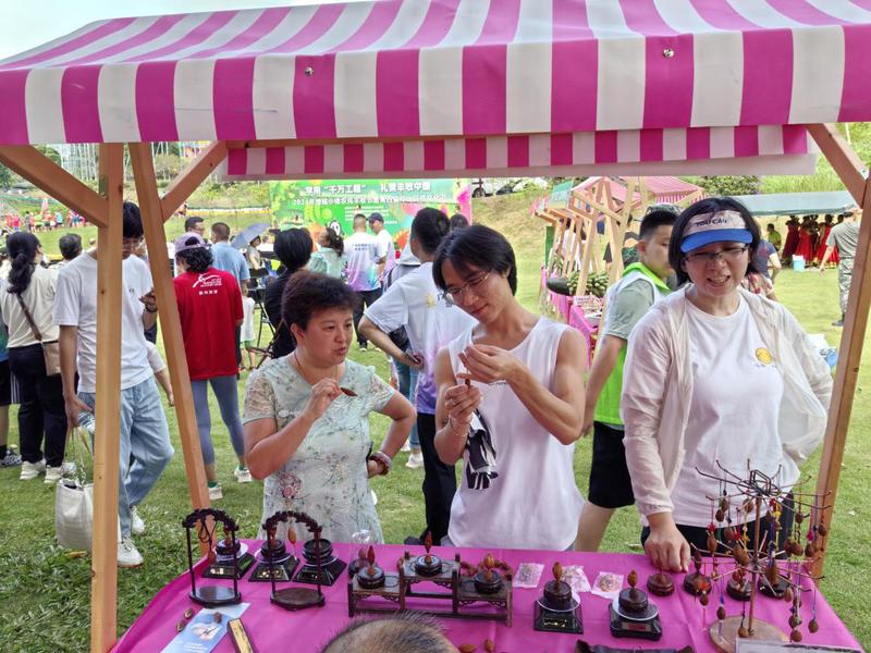 10月1日,以“學(xué)用‘千萬(wàn)工程’ 禮贊豐收中國(guó)”為主題的2024年增城小樓農(nóng)民豐收節(jié)暨第四屆鄧山打欖文化節(jié)在小樓鎮(zhèn)星欏紀(jì)大森林(廣州二龍山花園)舉行。本次活動(dòng)由廣州市增城區(qū)農(nóng)業(yè)農(nóng)村局指導(dǎo),小樓鎮(zhèn)人民政府主辦,旨在弘揚(yáng)中華優(yōu)秀農(nóng)耕文化,展示現(xiàn)代農(nóng)業(yè)發(fā)展成果,宣傳特色農(nóng)產(chǎn)品品牌,推動(dòng)農(nóng)業(yè)農(nóng)村現(xiàn)代化,助力“百千萬(wàn)工程”。我校欖雕協(xié)會(huì)師生參加并助力宣傳推廣國(guó)家級(jí)非物質(zhì)文化——廣州欖雕,以分享非遺成果的形式展現(xiàn)了豐收的喜悅,表達(dá)了對(duì)祖國(guó)75周年華誕的美好祝福。