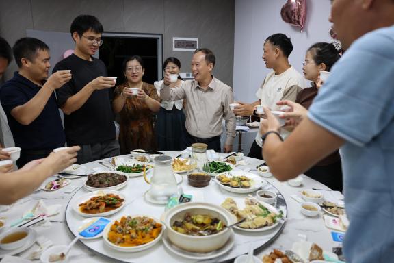 云浮校區(qū)教職工生日宴上城建學院羅遠明老師帶來自己的詩作《獻給十月出生的人》,祝福大家生日快樂,祝愿祖國繁榮富強。