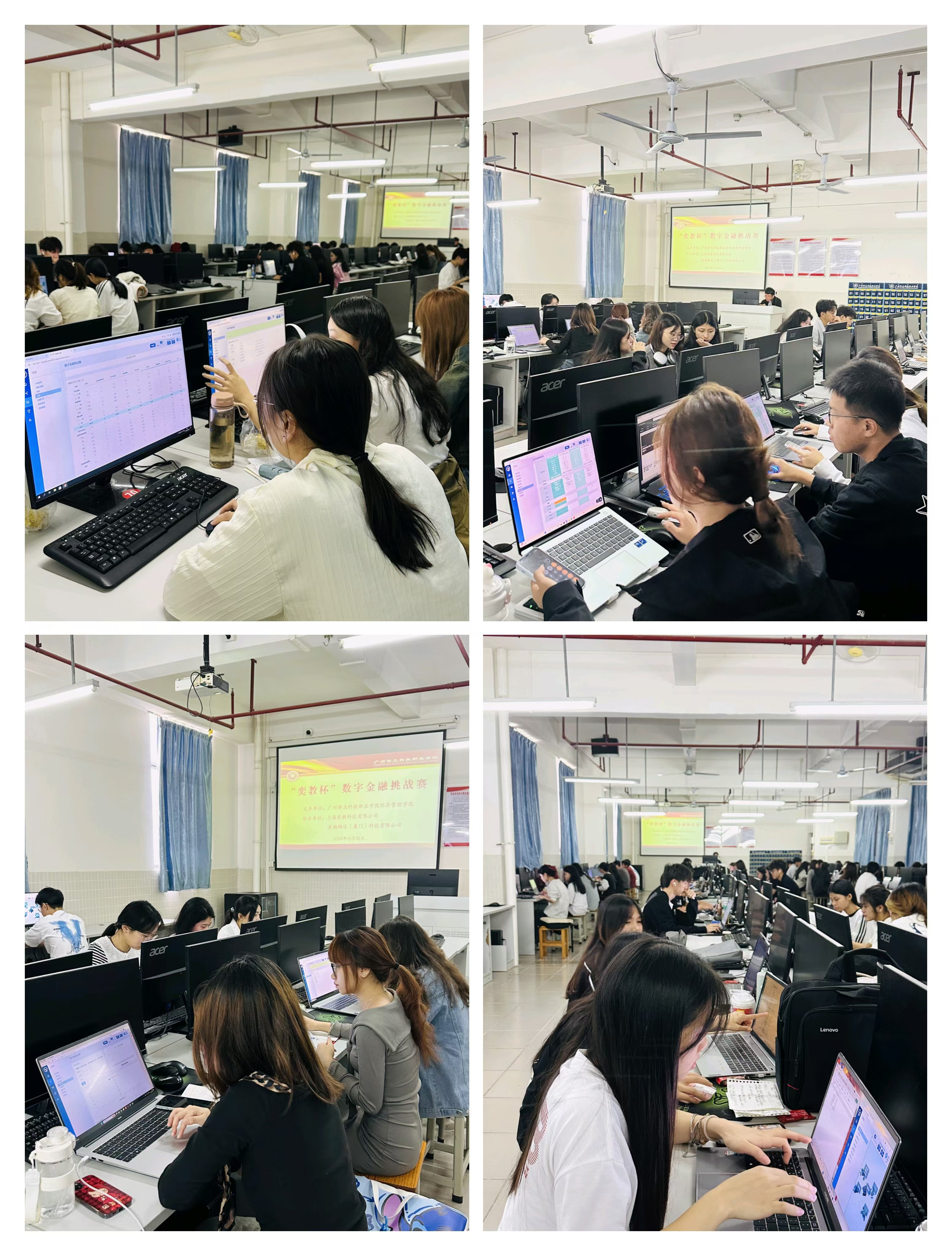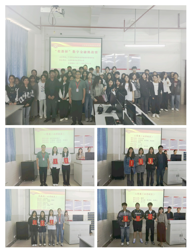 本次競賽自啟動以來,得到了企業(yè)、學(xué)校以及學(xué)院各級領(lǐng)導(dǎo)的廣泛關(guān)注和支持,吸引了來自增城校區(qū)和云浮校區(qū)近140名同學(xué)報名參與。在競賽過程中,同學(xué)們將理論與實踐緊密結(jié)合,勇于創(chuàng)新,積極發(fā)揮團隊的智慧和力量,充分展現(xiàn)了廣州華立科技職業(yè)學(xué)院學(xué)子積極向上、勇于擔(dān)當(dāng)?shù)木耧L(fēng)貌。經(jīng)過激烈的角逐,多個優(yōu)秀團隊在比賽中脫穎而出,斬獲佳績,展現(xiàn)了較強的數(shù)字金融經(jīng)營與決策能力。