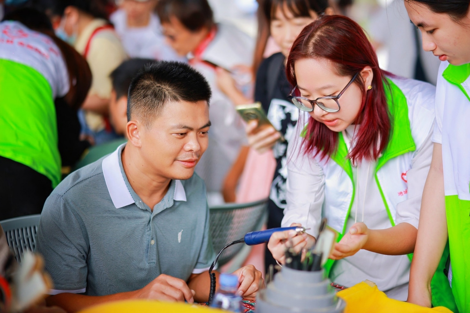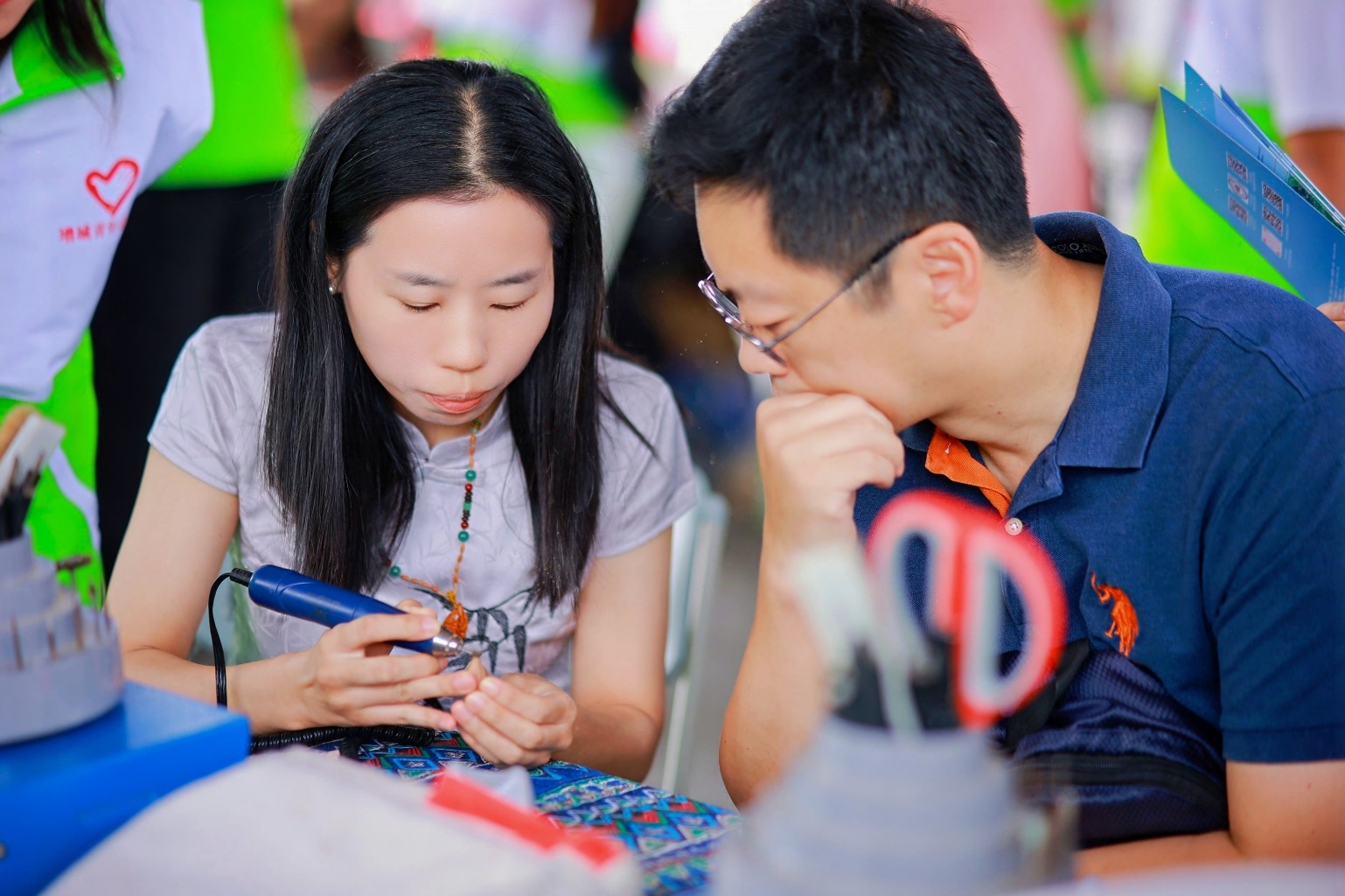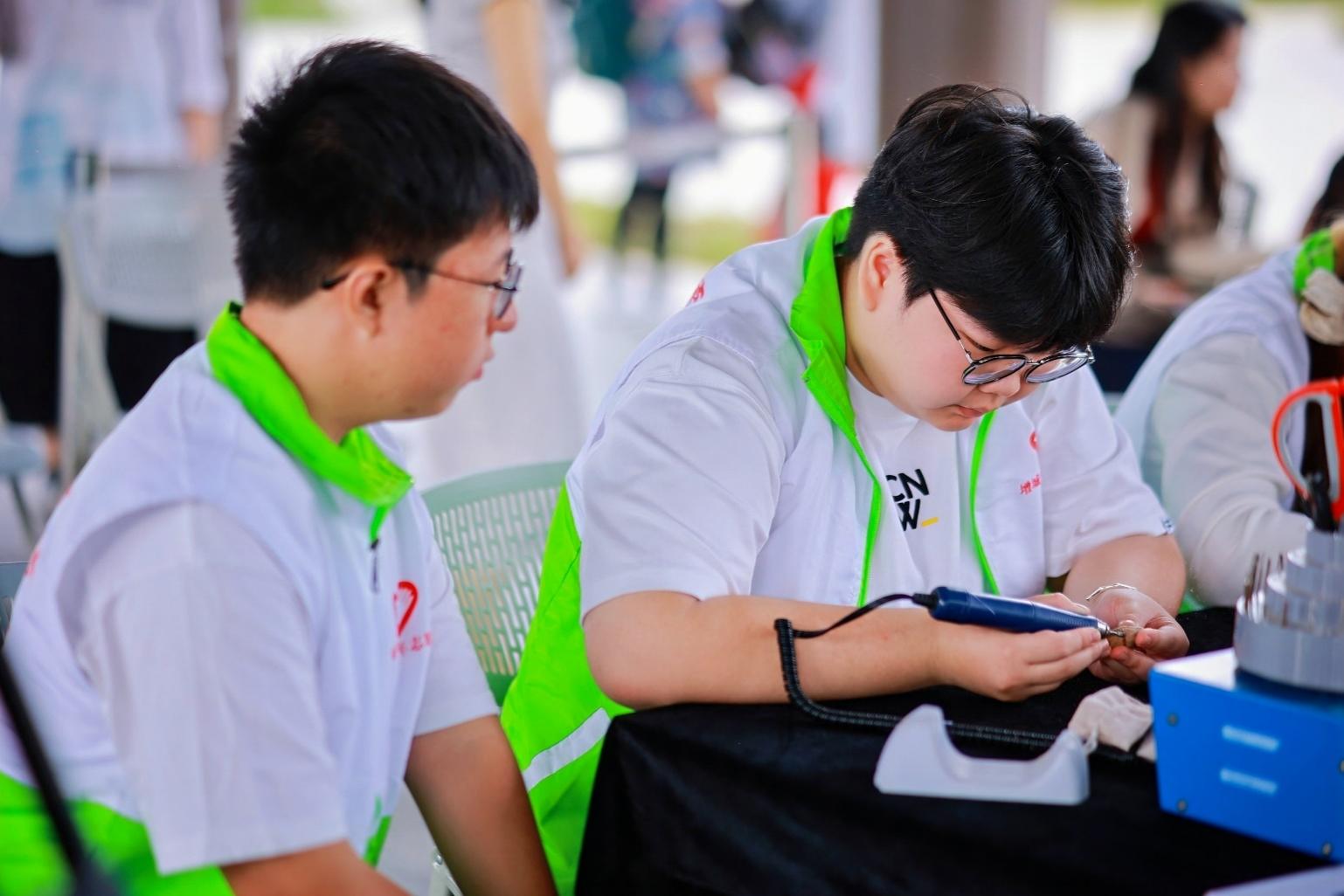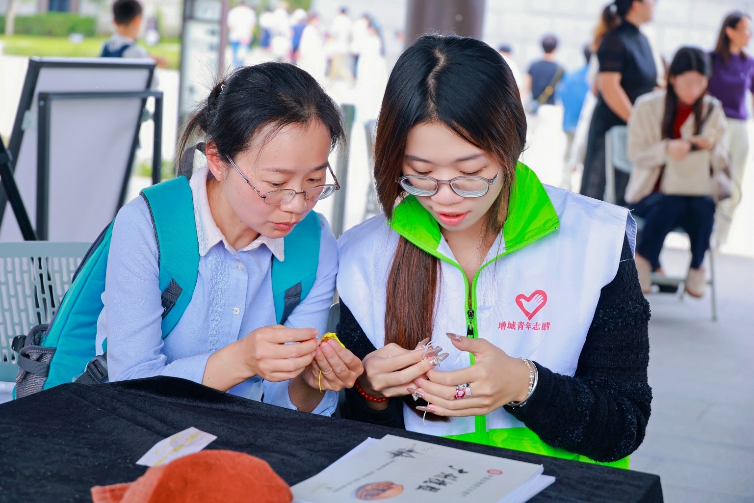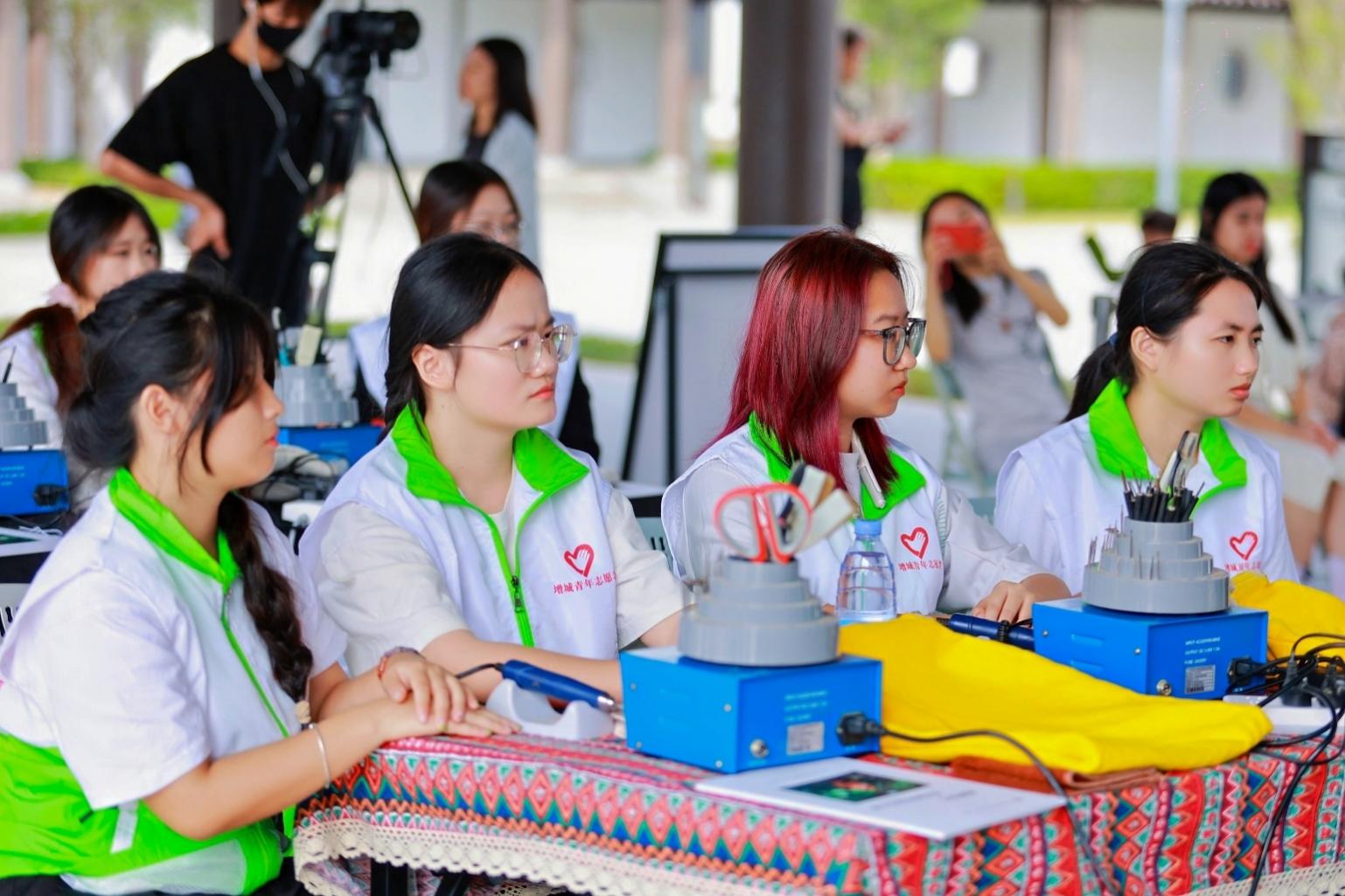 在互動體驗環(huán)節(jié)中,這些新一代“非遺傳承人”們變身小老師分組進行演示,并熱情邀請現(xiàn)場的觀眾走進課堂,親身參與“欖雕”制作。現(xiàn)場氣氛熱烈,這一刻,我們感受到傳承的力量。