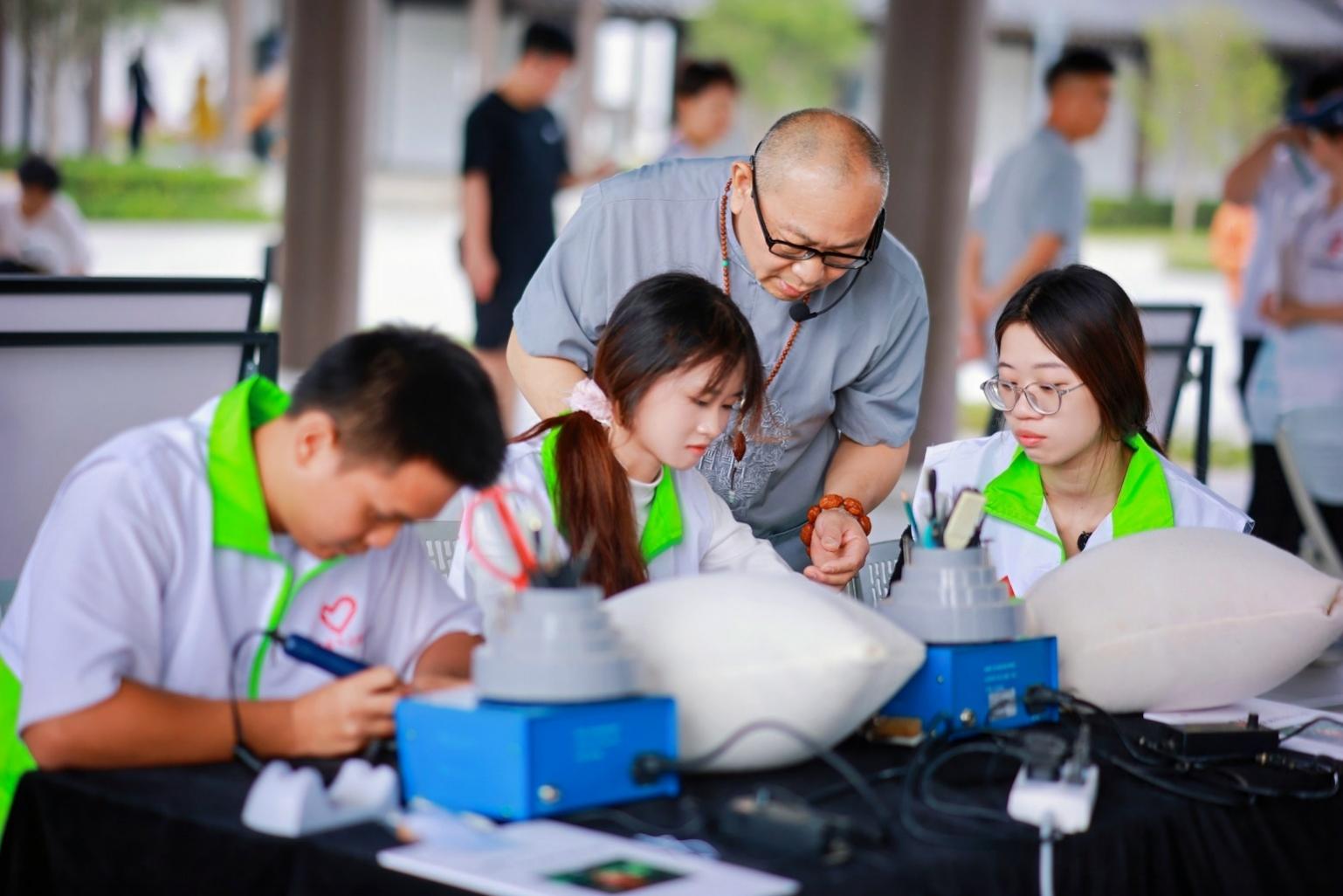 周漢軍老師指導學生實操的環(huán)節(jié)是課程重點,他手把手現(xiàn)場教大家雕刻了葫蘆。