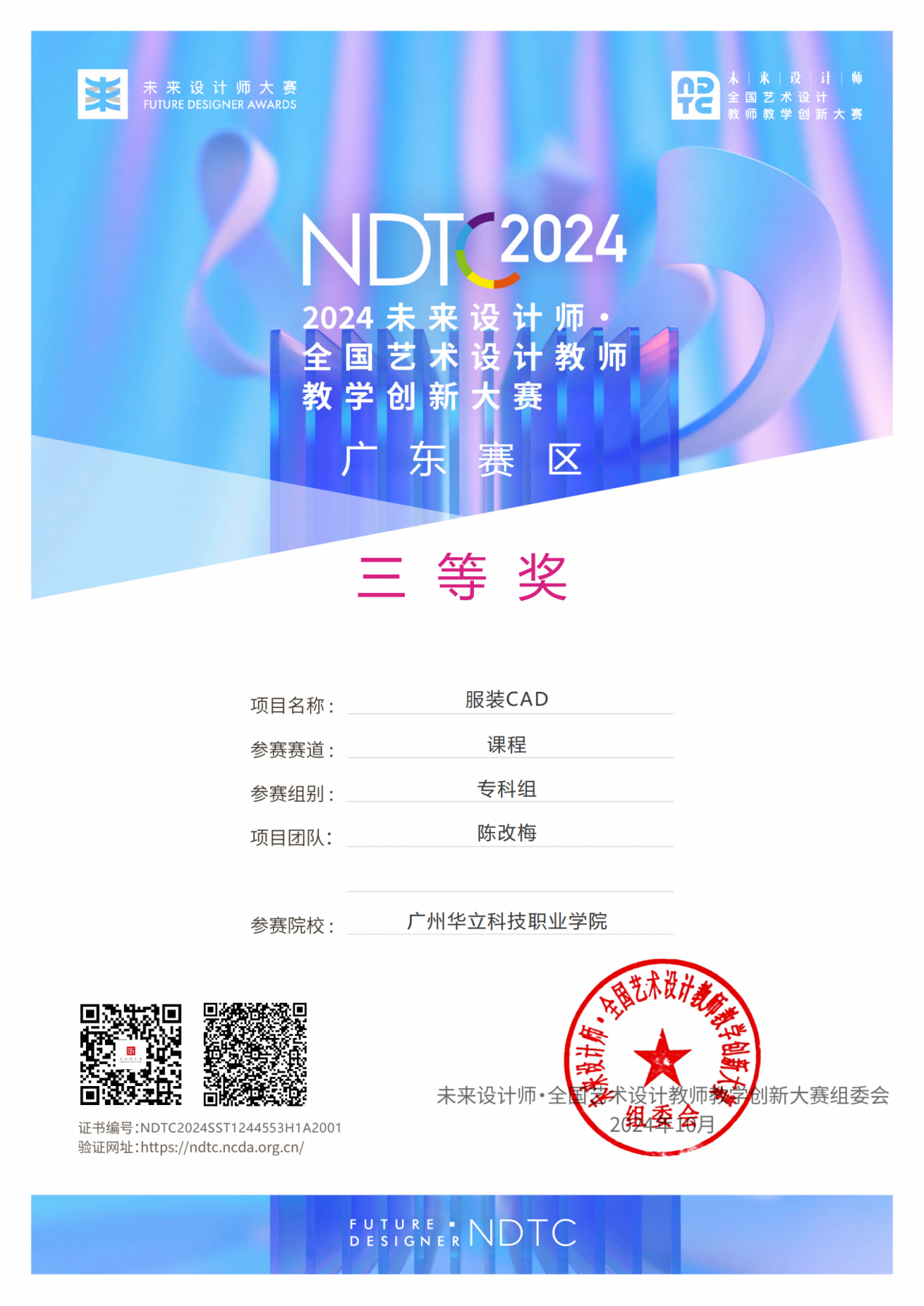 其中,陳改梅老師憑借《服裝CAD》課程榮獲大賽三等獎。該課程以其獨特的教學(xué)設(shè)計、豐富的教學(xué)內(nèi)容和創(chuàng)新的教學(xué)方法,獲得了評審專家的高度評價;李桂林老師及團隊憑借課程《基于崗課賽證創(chuàng)背景下PS圖像處理課程建設(shè)》榮獲大賽三等獎,課程巧妙地將理論與實踐相結(jié)合,通過引導(dǎo)學(xué)生參與實際項目,培養(yǎng)了學(xué)生的創(chuàng)新思維和實際操作能力;馬英超老師及團隊憑借課程《美育實踐--欖雕技藝》榮獲大賽三等獎,課程采用了項目式學(xué)習(xí),極大地激發(fā)了學(xué)生的學(xué)習(xí)興趣和主動性。