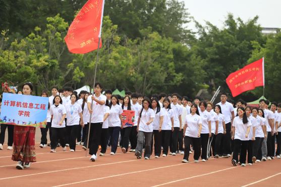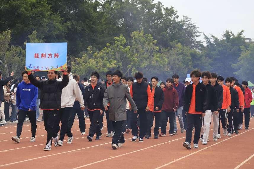 主持人介紹完出席開幕式的領(lǐng)導(dǎo)嘉賓后,伴隨著激昂的進(jìn)行曲,運(yùn)動(dòng)員和裁判員方陣依次入場。他們步伐堅(jiān)定、精神飽滿,充分展現(xiàn)了華立學(xué)子昂揚(yáng)向上的精神風(fēng)貌和積極進(jìn)取的競技態(tài)度。各學(xué)院方陣精心策劃了入場儀式,旨在展現(xiàn)各自學(xué)院獨(dú)特的精神風(fēng)貌與文化底蘊(yùn),同時(shí)也表現(xiàn)了對(duì)本次運(yùn)動(dòng)會(huì)的深切重視與積極參與。現(xiàn)場觀眾被各學(xué)院方陣的創(chuàng)意造型和響亮的口號(hào)深深吸引,不時(shí)爆發(fā)出熱烈的掌聲。