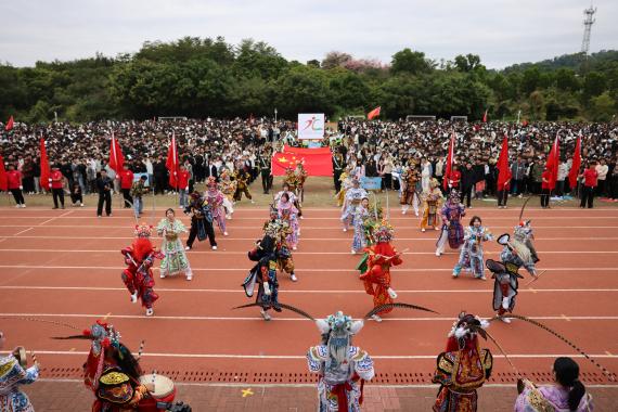 精彩的節(jié)目表演為運(yùn)動(dòng)會(huì)開幕式增添了一抹亮色。學(xué)生們將傳統(tǒng)體育項(xiàng)目醒獅、英歌舞、武術(shù)與現(xiàn)代運(yùn)動(dòng)項(xiàng)目跆拳道、啦啦操等巧妙融合,呈現(xiàn)出一場別開生面的表演。這些表演交相輝映,不僅展現(xiàn)了華立學(xué)子對(duì)“傳承與創(chuàng)新”理念的深刻踐行,也彰顯了他們的時(shí)代魅力。每一個(gè)動(dòng)作都充滿青春的活力與激情,既體現(xiàn)了他們對(duì)體育精神的熱愛與追求,也為運(yùn)動(dòng)會(huì)現(xiàn)場營造出一種熱烈而濃厚的氛圍。這場盛會(huì)因此充滿了生機(jī)與希望,讓在場的每一位觀眾都感受到了體育帶來的正能量和青春的力量。