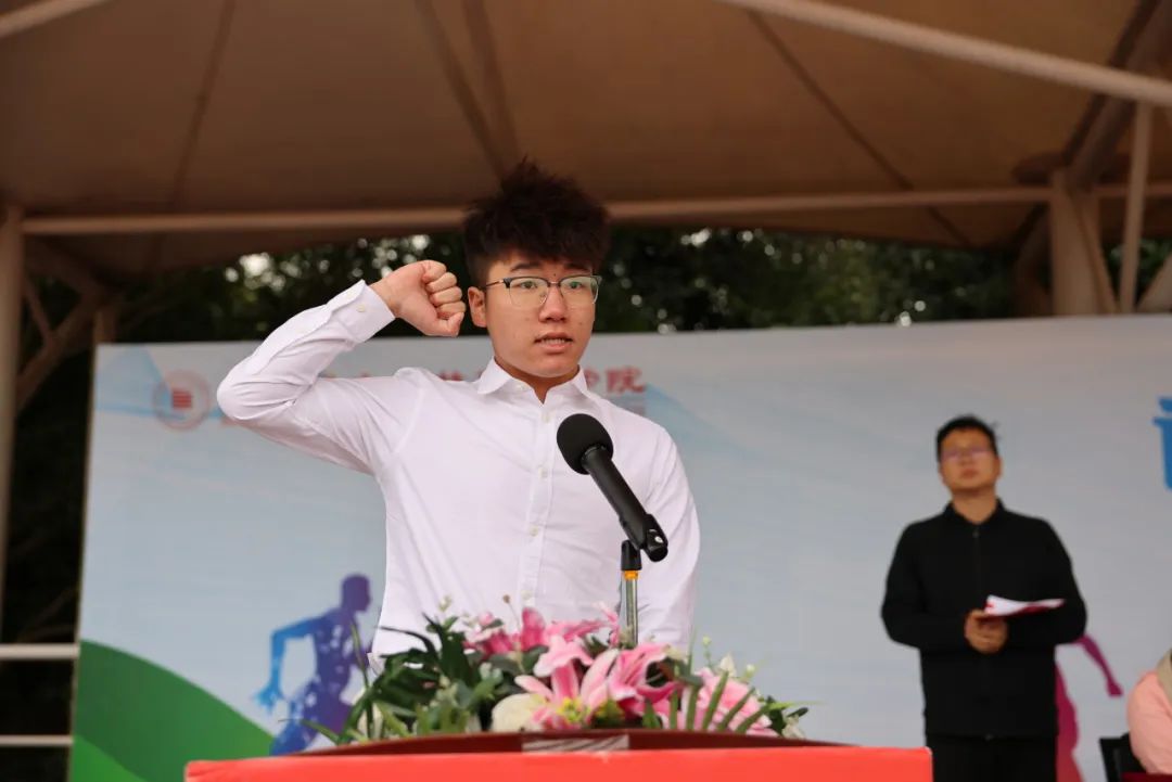 24級(jí)體育教育1班的王培森同學(xué)作為運(yùn)動(dòng)員代表進(jìn)行宣誓,他表示將嚴(yán)格遵守運(yùn)動(dòng)員守則和比賽規(guī)則,尊重對(duì)手,服從裁判,以良好的競技狀態(tài)和道德風(fēng)尚參與比賽,增進(jìn)友誼。