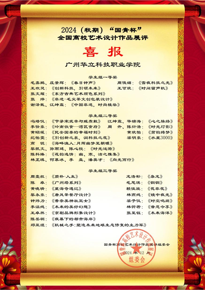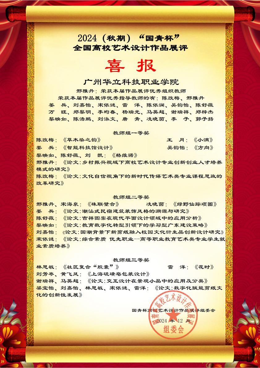 二十五載華立匠心譜,國青賽場藝傳華章著 ——我校藝傳學(xué)院師生在2024年“國青杯”全國高校藝術(shù)設(shè)計作品展中再創(chuàng)佳績