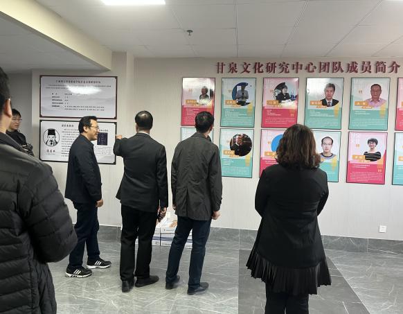 隨后,與會領導參觀了廣州市甘泉文化研究會,了解該會的機構(gòu)設置、團隊構(gòu)成與日常運行、湛若水學術思想與甘泉文化研究中心工作及服務地方經(jīng)濟社會發(fā)展進展情況等,并對該會工作進行指導。