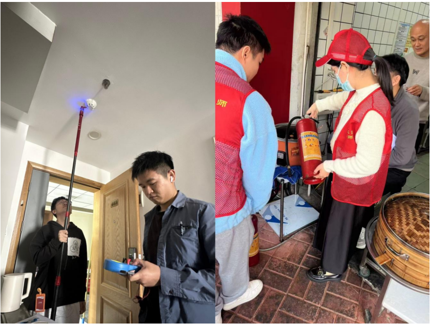 保衛(wèi)處工作人員檢查測試消防設(shè)施