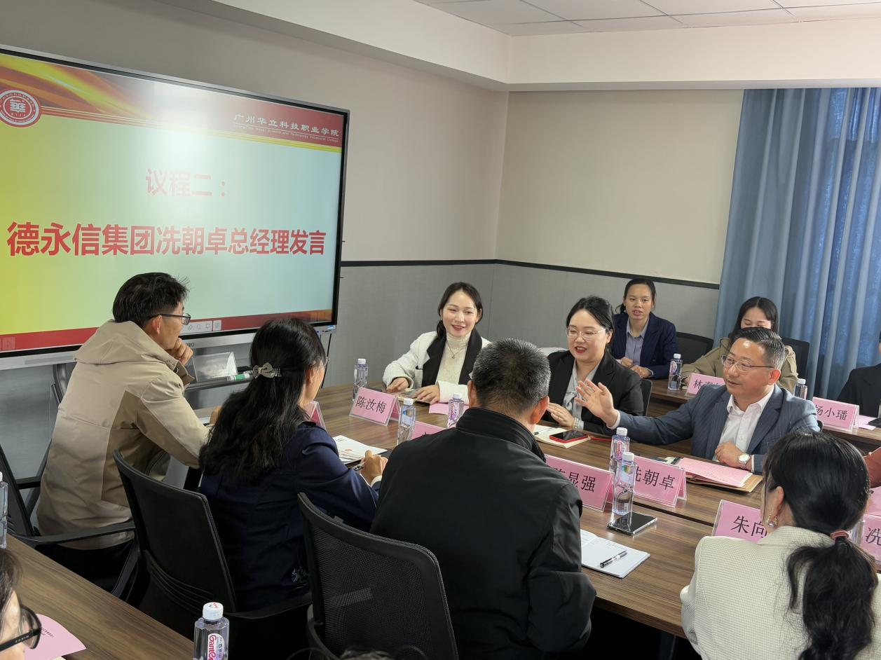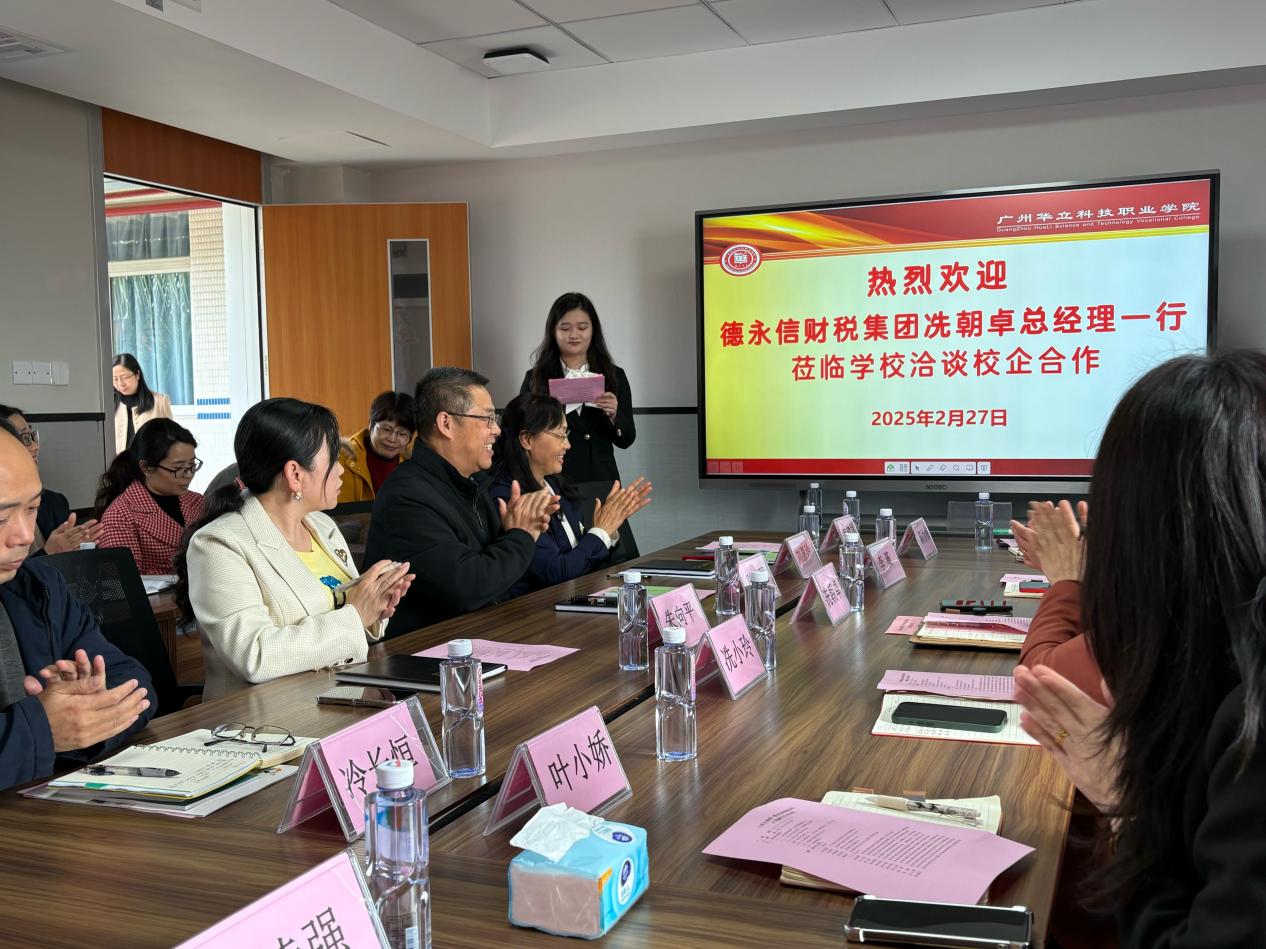 2025年2月27日,深圳市德永信財(cái)稅集團(tuán)有限公司總經(jīng)理冼朝卓先生率領(lǐng)集團(tuán)下各子公司高管們一行蒞臨廣州華立科技職業(yè)學(xué)院經(jīng)濟(jì)管理學(xué)院參加“共育匠才 ‘職’ 通未來” 產(chǎn)教融合洽談會。學(xué)校副校長陳顯強(qiáng)教授親臨會場,陪同參會的還有教務(wù)處處長王澤秀及產(chǎn)教融合辦韋建林主任。