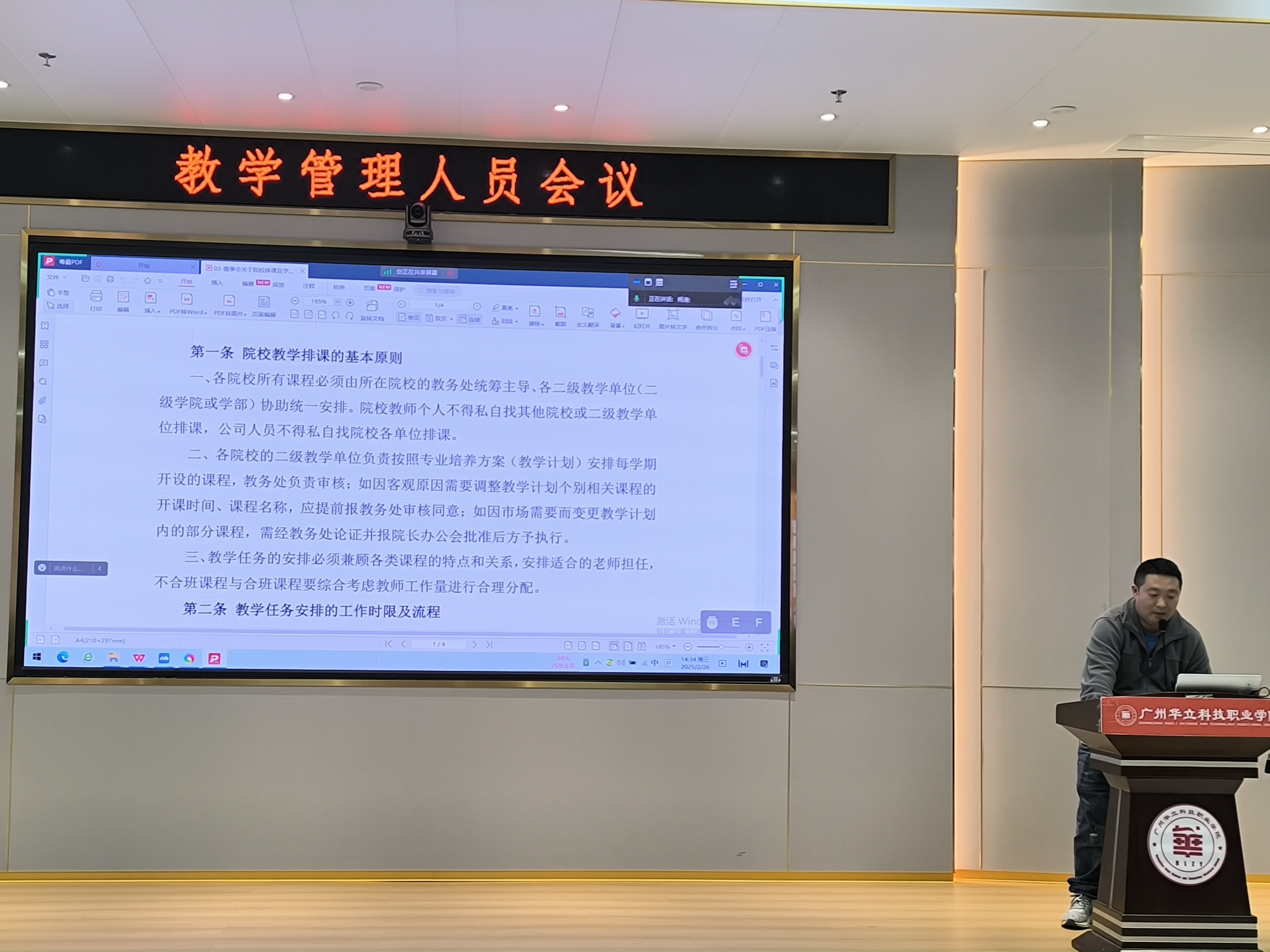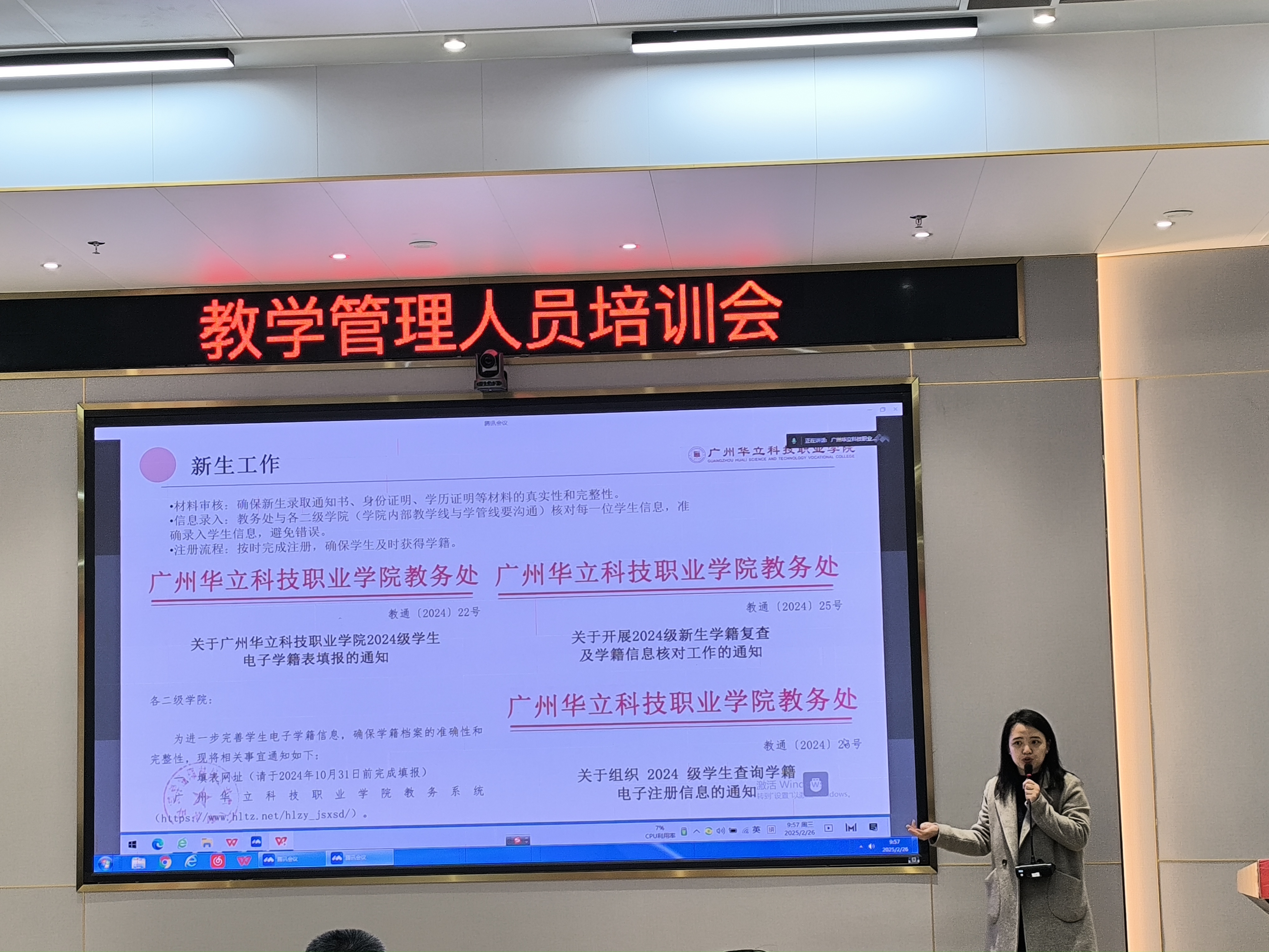 為進(jìn)一步加強(qiáng)教學(xué)管理隊(duì)伍建設(shè)、提高教學(xué)管理人員的政策水平和業(yè)務(wù)水平,2025年2月26日,教務(wù)處組織廣州、云浮兩校區(qū)同步召開(kāi)教學(xué)管理人員業(yè)務(wù)培訓(xùn)會(huì)。會(huì)議由教務(wù)處副處長(zhǎng)曾英姿主持,兩校區(qū)教學(xué)管理人員約100余人參加培訓(xùn)會(huì)。