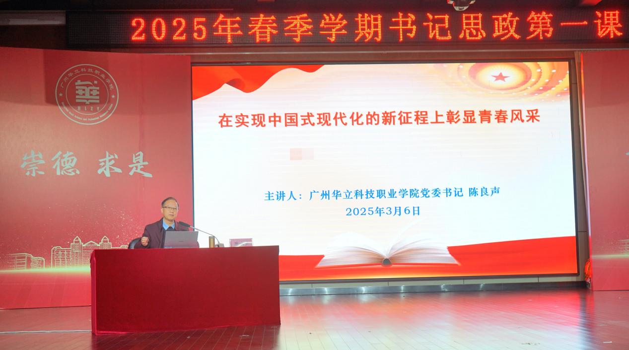 為深入學習貫徹黨的二十屆三中全會精神和《中共中央關于進一步全面深化改革、推進中國式現(xiàn)代化的決定》提出的重大舉措,引領廣大學生在實現(xiàn)中國式現(xiàn)代化的新征程上彰顯青春風采,3月6日晚,學校黨委書記陳良聲在圖書館八樓報告廳為600多學生代表講授了題為“在實現(xiàn)中國式現(xiàn)代化的新征程上彰顯青春風采”的春季學期“思政第一課”。學校各二級黨組織書記、馬克思主義學院教師、黨委辦公室和各二級學院黨務干部到場聽課。思政第一課由黨委辦公室主任石朝陽主持。