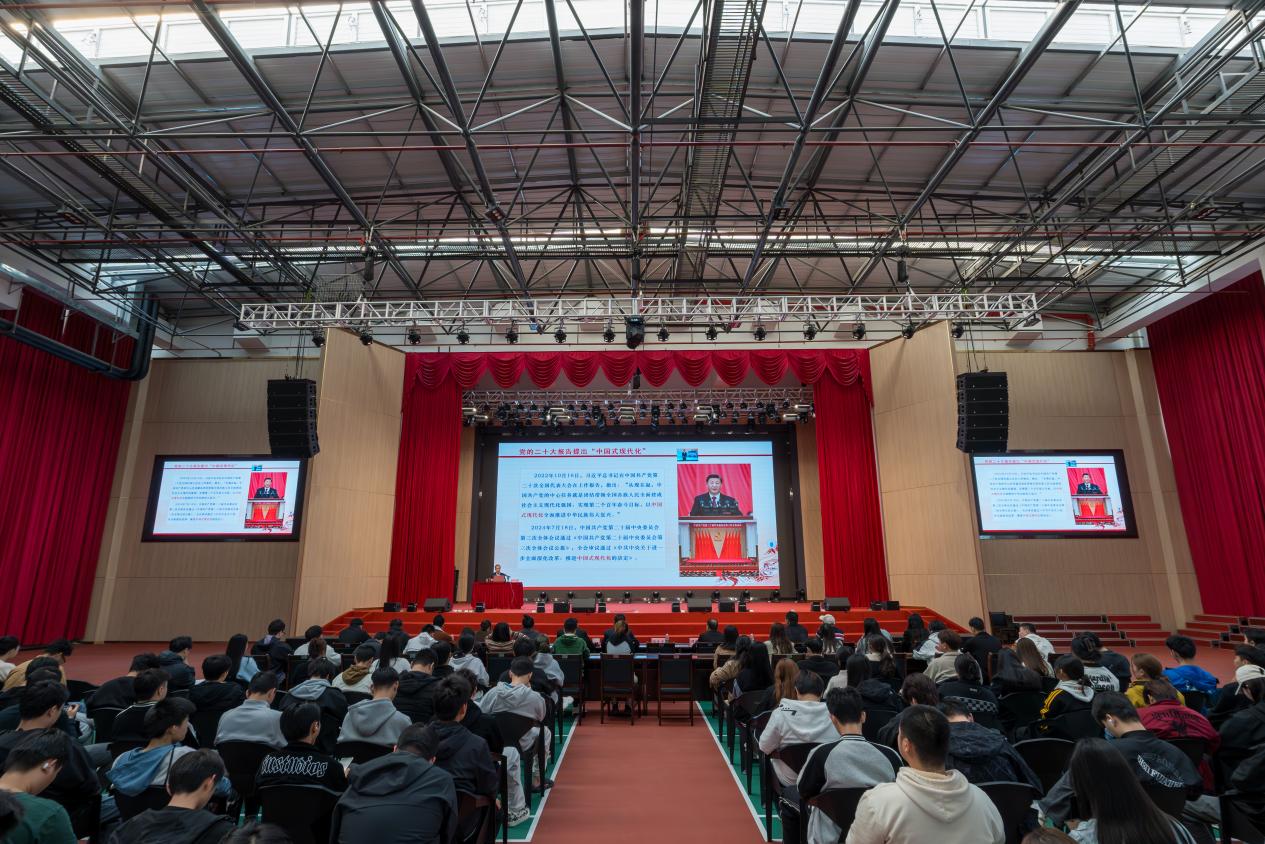“從現(xiàn)在起,中國共產(chǎn)黨的中心任務就是團結(jié)帶領(lǐng)全國各族人民全面建成社會主義現(xiàn)代化強國、實現(xiàn)第二個百年奮斗目標,以中國式現(xiàn)代化全面推進中華民族偉大復興。“陳良聲書記以黨的二十大報告和黨的二十屆三中全會通過的《中共中央關(guān)于進一步全面深化改革、推進中國式現(xiàn)代化的決定》為切入點,圍繞“中國式現(xiàn)代化的探索歷程、中國式現(xiàn)代化的中國特色、中國式現(xiàn)代化的本質(zhì)要求、中國式現(xiàn)代化的戰(zhàn)略支撐、中國式現(xiàn)代化的偉大成就、在新征程上展現(xiàn)青春作為”六個篇章進行詳細講解。通過深入淺出的案例闡述和豐富的數(shù)據(jù)呈現(xiàn),從經(jīng)濟、政治、文化、社會、教育等方面全面深入介紹了在中國式現(xiàn)代化前進的道路上所取得的成就,引導同學們深刻體會中國式現(xiàn)代化的豐富內(nèi)涵和現(xiàn)實意義。