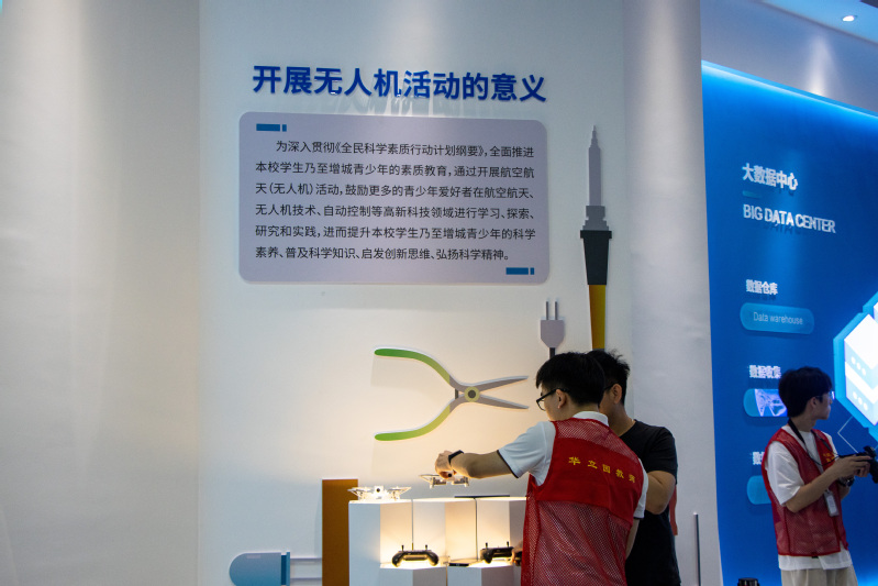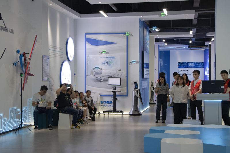 踏入人工智能館,科普講解員以通俗易懂、妙趣橫生的語言闡釋了AI的核心原理,通過與智能語音助手的互動(dòng),揭示了機(jī)器思考的方式。從日常生活中智能化應(yīng)用的實(shí)例出發(fā),拉近了大家與未來科技的距離。為更深入地理解科技的力量,借助VR眼鏡,邀請(qǐng)參觀者體驗(yàn)成為外科專家,沿著血脈經(jīng)絡(luò),虛擬仿真成功完成外科手術(shù)。借助無人機(jī),配合炫彩燈光,觀賞鋼鐵精靈上演的精妙絕倫的空中芭蕾,激發(fā)參觀者對(duì)科學(xué)知識(shí)的興趣與熱情。