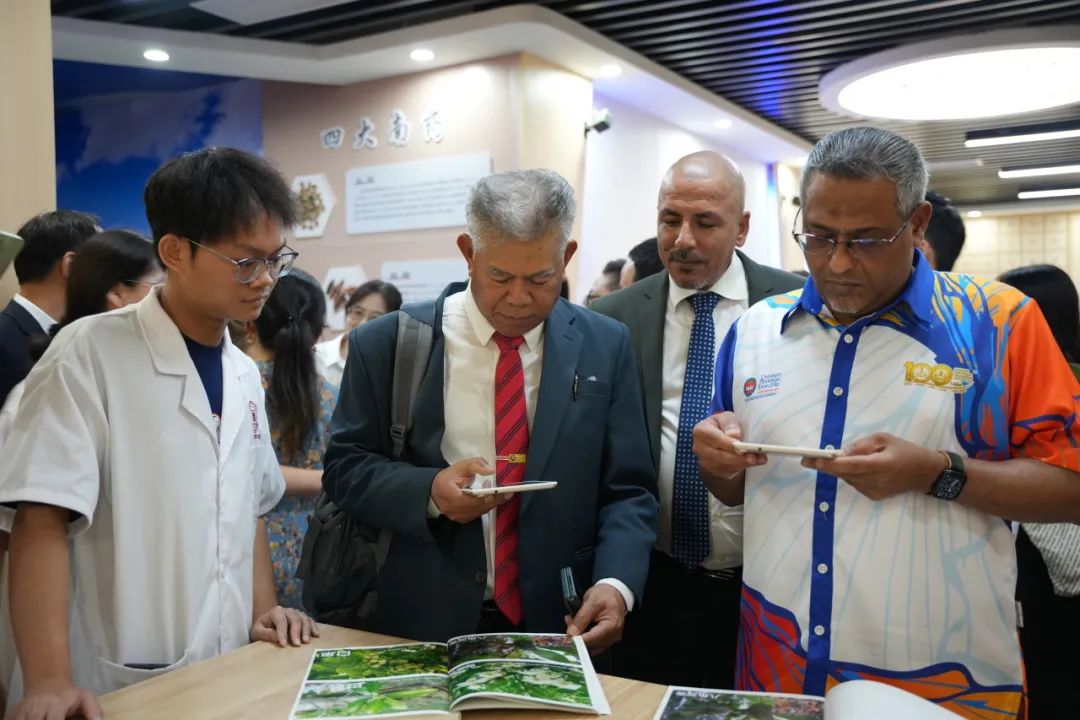 座談會(huì)結(jié)束后,學(xué)校領(lǐng)導(dǎo)陪同UPSI與PECSB一行參觀中醫(yī)藥文化館、欖雕工藝大師工作室、人工智能創(chuàng)新中心、校園特色景觀、生活學(xué)院實(shí)訓(xùn)基地。他們對(duì)學(xué)校的校園建設(shè)給予了充分的肯定。
