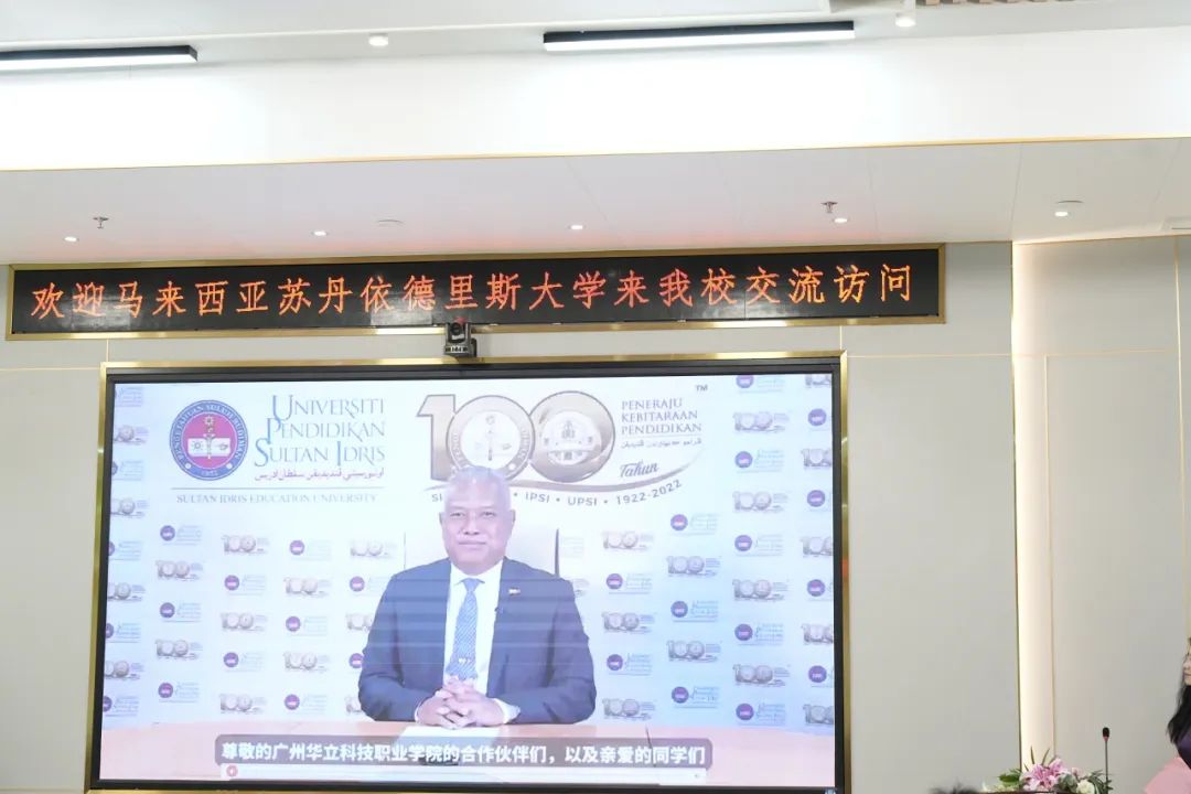會(huì)議伊始,學(xué)校校長廖俊杰致歡迎辭,向遠(yuǎn)道而來的貴賓們表示最熱烈的歡迎和最誠摯的感謝!廖校長在致辭中向與會(huì)的嘉賓們簡要介紹了學(xué)校的情況。學(xué)校擁有26年的辦學(xué)歷史,在校生25000余人。學(xué)校設(shè)有10個(gè)二級(jí)學(xué)院,開設(shè)軟件技術(shù)、人工智能技術(shù)應(yīng)用、大數(shù)據(jù)技術(shù)、新能源汽車技術(shù)以及適應(yīng)人口老齡化,服務(wù)民生工程的健康管理、護(hù)理、康復(fù)治療技術(shù)、電子商務(wù)、中醫(yī)學(xué)等53個(gè)專業(yè)。同時(shí),學(xué)校是“全國先進(jìn)辦學(xué)單位”、全國鄉(xiāng)村振興電商人才培養(yǎng)示范基地暨村村播工程示范校、廣東省非物質(zhì)文化遺產(chǎn)傳承基地,獲得了廣泛的社會(huì)認(rèn)可。廖校長指出學(xué)校與UPSI大學(xué)和各位從事教育的同仁們交流活動(dòng),是積極響應(yīng)“一帶一路”倡議,共謀教育發(fā)展、共育國際化人才的重要實(shí)踐。表示希望我們要以此次交流為契機(jī),攜手并進(jìn),為促進(jìn)中馬教育合作、增進(jìn)兩國友誼作出更大貢獻(xiàn)!