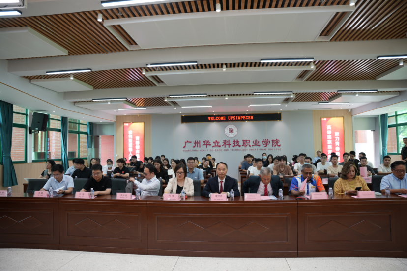 UPSI大學(xué)團(tuán)隊(duì)的國際事務(wù)與高等教育發(fā)展中心(IMAC)主任、校長助理,Professor Dr. Ramlee binIsmail教授、博士,管理與經(jīng)濟(jì)學(xué)院院長、副教授、博士,Profesor Magya Dr. Mohd Asri bin Mohd Noor;PECSB團(tuán)隊(duì)的總經(jīng)理Norhawaty Mansor,營銷總監(jiān)Hosiny Mohamed Hosiny Saad,Dato' Rocky Foo Wei Sze,諾哈瓦蒂女士的私人助理Mohd Asyrani Bin Rosani;廣東江門中醫(yī)藥職業(yè)學(xué)院教務(wù)部助理朱珍佶;岳陽現(xiàn)代服務(wù)職業(yè)學(xué)院繼續(xù)教育學(xué)院辦公室主任鐘森林等高校代表;同時(shí),中國兵器工業(yè)集團(tuán)兵器人才研究院北方至信華南區(qū)業(yè)務(wù)部主任莫少謀、校企合作辦公室副主任杜惠詩、辦公室副主任莫云天,南大安高資本市場研究院國際交流學(xué)院院長朱智勇、副院長廖宇、招生處副主任趙彬、教務(wù)處助理麥嘉瑜、運(yùn)營部助理莫武岸等業(yè)界精英也應(yīng)邀出席;此外,學(xué)校校長廖俊杰、常務(wù)副校長馬俊、校辦主任李鵬、繼續(xù)教育學(xué)院副院長呂靖、團(tuán)委書記張超越、經(jīng)濟(jì)管理學(xué)院院長劉惠玲等領(lǐng)導(dǎo)以及教師代表也悉數(shù)到場。學(xué)校與來自校企7家單位的領(lǐng)導(dǎo)嘉賓共同參加了交流座談會(huì)并同時(shí)見證了廣州華立科技職業(yè)學(xué)院優(yōu)學(xué)國際語言中心成立的重要時(shí)刻。