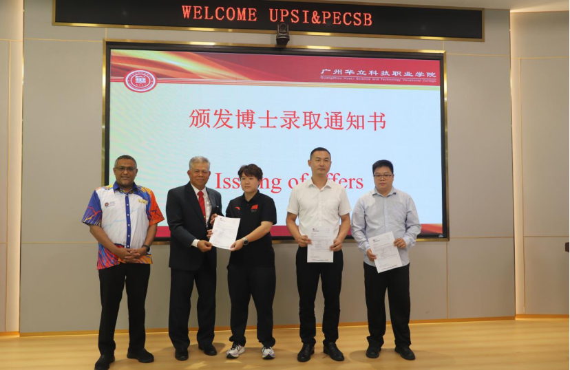 學(xué)校與蘇丹依德里斯教育大學(xué)合作的漢語言文化、教育管理專業(yè)碩博學(xué)歷提升項(xiàng)目,突破了以往的項(xiàng)目壁壘,全面響應(yīng)了國家“一帶一路“職教出?!背h,也為華立職院的教職工們搭建了良好的國際視野平臺(tái)。馬來西亞蘇丹依德里斯教育大學(xué)的領(lǐng)導(dǎo)也為攻讀博士學(xué)歷的教職工代表頒發(fā)了錄取通知書。