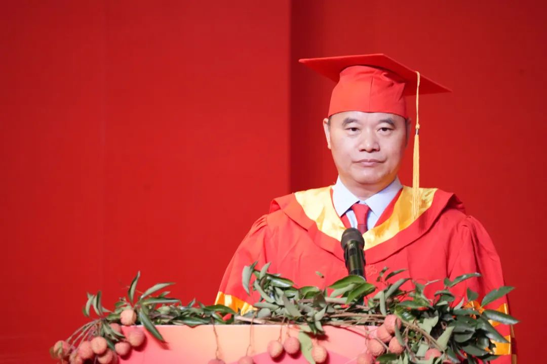 荔香盈園驪歌揚,青春啟航正遠(yuǎn)行。廖俊杰校長用情真意切的致辭表達(dá)了對2025屆畢業(yè)生的熱烈祝賀和深情祝福。在即將離開校園,開啟嶄新的人生之旅之際,廖校長對畢業(yè)生提出了四點希望,一是堅持學(xué)習(xí)精進(jìn),不斷提升技能,為新質(zhì)生產(chǎn)力發(fā)展服務(wù)。二是堅守工匠精神,勇于擔(dān)當(dāng)責(zé)任,大力弘揚“崇德、求是、博學(xué)、篤行”的華立精神,成為新時代有理想、有本領(lǐng)、有擔(dān)當(dāng)?shù)募夹g(shù)人才。三是厚植家國情懷,把個人的奮斗目標(biāo)與國家和民族的偉大事業(yè)緊密結(jié)合在一起,實現(xiàn)自我價值。四是緊跟時代步伐,提升數(shù)字素養(yǎng),適應(yīng)未來職場的變化,成為適應(yīng)數(shù)字時代發(fā)展的高素質(zhì)技術(shù)技能型人才。愿畢業(yè)生們懷著對未來的憧憬,堅定啟航,在新征程上振翅翱翔。