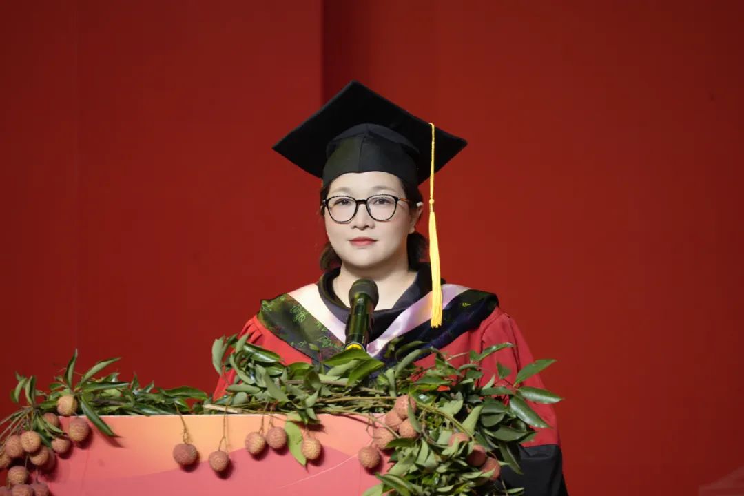 陳依瀾老師作為教師代表為畢業(yè)生送上了最真摯的祝福,與同學(xué)們一起回憶了共度的點點滴滴;這惜別的時刻,陳老師傾情贈予三句成長錦囊:崇德為根,守好人生的“定盤星”;求是為要,扎深事業(yè)的“根與魂”;博學(xué)篤行,繪就出生命的“立體畫”,為同學(xué)們即將開啟的新征程送上溫暖叮嚀與殷切期望。
