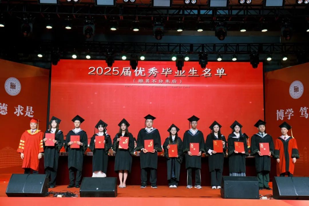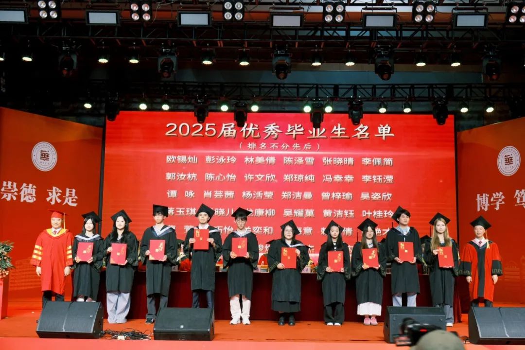 黨委書記陳良聲宣讀了優(yōu)秀畢業(yè)生表彰文件,廖俊杰校長和陳良聲書記為優(yōu)秀畢業(yè)生頒發(fā)了證書并合影留念。