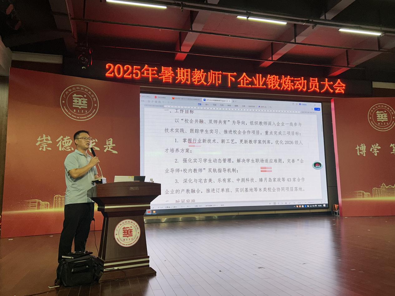 為進(jìn)一步加強(qiáng)“雙師型”教師隊(duì)伍建設(shè),提升教師實(shí)踐教學(xué)能力,促進(jìn)學(xué)校人才培養(yǎng)與企業(yè)需求緊密對(duì)接,2025年7月15日,我校召開2025年暑期教師企業(yè)實(shí)踐動(dòng)員大會(huì)。全體參與企業(yè)實(shí)踐的教師齊聚一堂,共同為即將開啟的企業(yè)實(shí)踐之旅加油鼓勁。