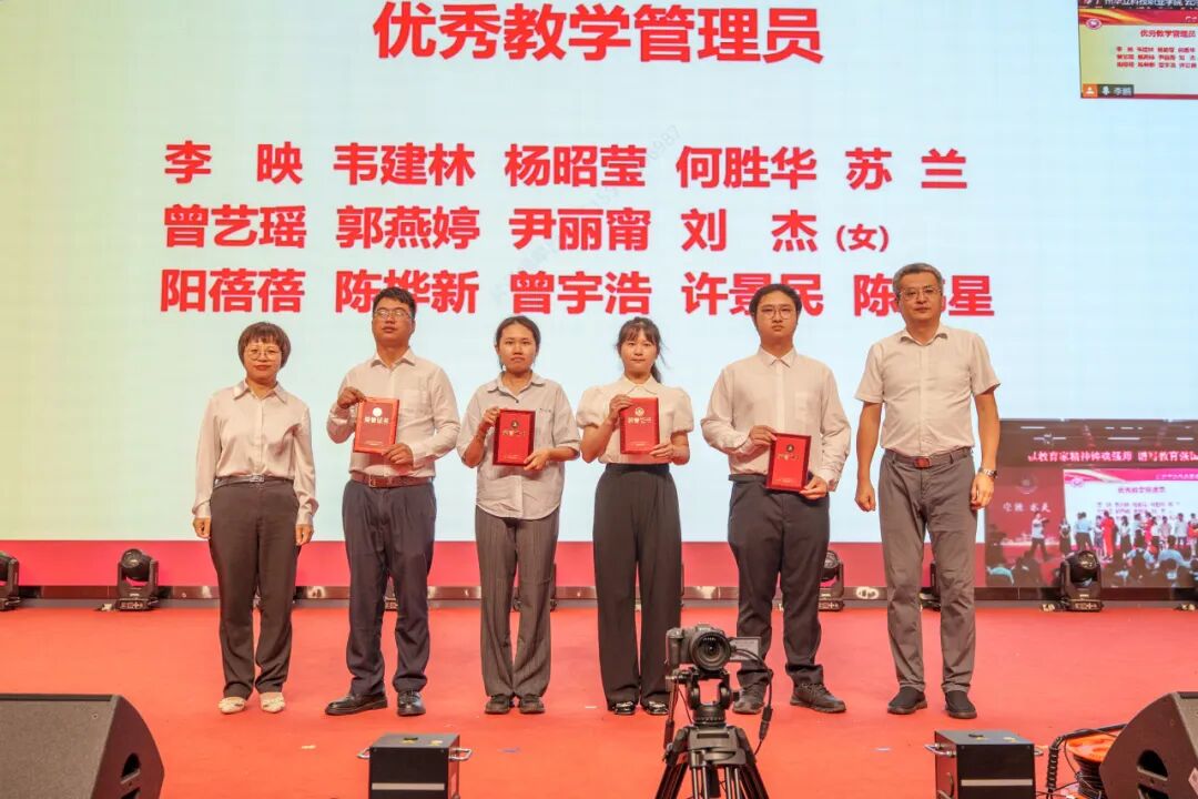 大會隆重表彰了過去一學(xué)年在教育教學(xué)、科研管理、學(xué)生工作、管理服務(wù)等方面涌現(xiàn)出的先進(jìn)集體和個人。廖俊杰、陳良聲等校領(lǐng)導(dǎo)分別為獲得表彰的集體代表和教師頒獎。