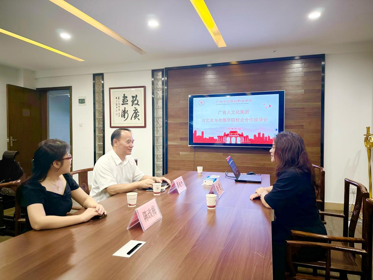 2025年9月16日,廣告人文化集團(天津)有限公司總裁辦公室主任李君一行到訪廣州華立科技職業(yè)學(xué)院,與校方就深化校企合作、推動產(chǎn)教融合展開座談交流。廣州華立科技職業(yè)學(xué)院校長廖俊杰、藝術(shù)與傳媒學(xué)院黨總支書記陳改梅等出席本次會議。