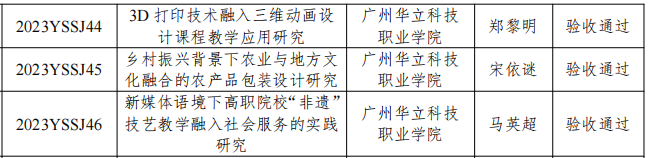 近日,依據(jù)廣東省職業(yè)學(xué)校藝術(shù)設(shè)計類專業(yè)教學(xué)指導(dǎo)委員會發(fā)布的《廣東省職業(yè)學(xué)校藝術(shù)設(shè)計類專業(yè)教學(xué)指導(dǎo)委員會2022-2023年度教育教學(xué)改革項目2025年結(jié)題驗收結(jié)果的通知》(粵職藝術(shù)設(shè)計教指委〔2025〕5號),我校傳來喜訊:由馬俊教授主持的《非遺藝術(shù)價值發(fā)現(xiàn)與服務(wù)大眾相關(guān)問題研究——以廣州欖雕為例》(項目編號:2022YSSJ65)、吳韻怡副教授主持的《數(shù)字化技術(shù)對高職藝術(shù)類專業(yè)學(xué)生在線學(xué)習(xí)效果的影響》(項目編號:2022YSSJ16)、黎映如副教授主持的《基于1+X證書制度的藝術(shù)設(shè)計專業(yè)“崗課賽證”融通的實踐探索》(項目編號:2022YSSJ72)、陳改梅副教授主持的《“三教改革”視域下職業(yè)院校藝術(shù)設(shè)計類課程思政建設(shè)及案例研究》(項目編號:2023YSSJ43)、鄭黎明副教授主持的《3D打印技術(shù)融入三維動畫設(shè)計課程教學(xué)應(yīng)用研究》(項目編號:2023YSSJ44)、宋依謎副教授主持的《鄉(xiāng)村振興背景下農(nóng)業(yè)與地方文化融合的農(nóng)產(chǎn)品包裝設(shè)計研究》(項目編號:2023YSSJ45)、馬英超副教授主持的《新媒體語境下高職院?!胺沁z”技藝教學(xué)融入社會服務(wù)的實踐研究》(項目編號:2023YSSJ46)這7項教育教學(xué)改革項目均圓滿通過結(jié)題驗收。廣州華立科技職業(yè)學(xué)院在此次教改浪潮中斬獲豐碩成果,在數(shù)字化教學(xué)、非遺傳承、產(chǎn)教融合等多個關(guān)鍵領(lǐng)域交出了一份令人眼前一亮的創(chuàng)新答卷,為藝術(shù)設(shè)計類職業(yè)教育的高質(zhì)量發(fā)展注入了源源不斷的強勁動力。