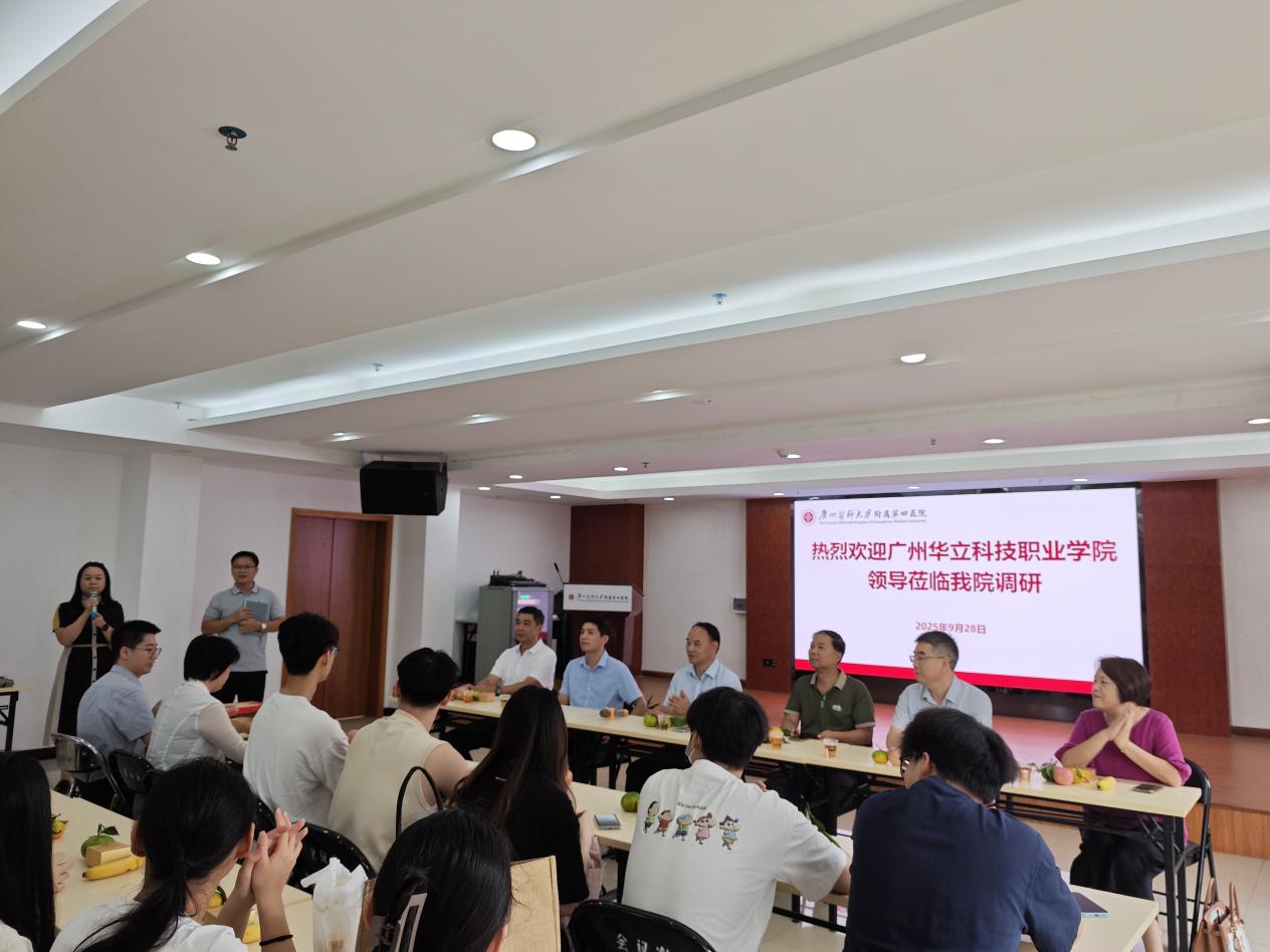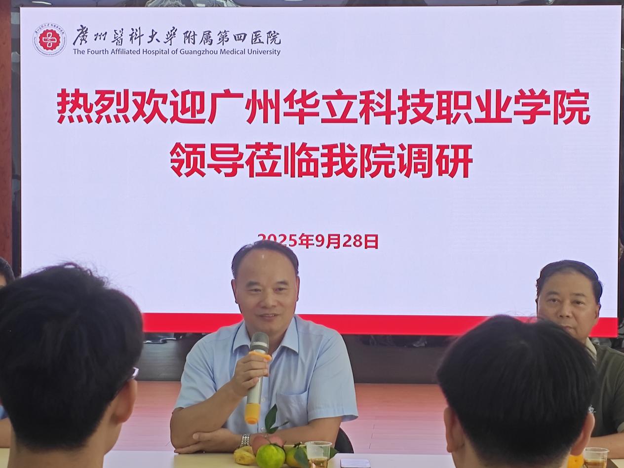 在國慶、中秋雙節(jié)來臨之際,2025年9月28日下午,我校廖俊杰校長、教務(wù)處孫麗英處長、實踐教學(xué)科韋建林科長、健康學(xué)院雷毅雄院長、李國良副院長、行政主任梁瑞云、實習(xí)指導(dǎo)老師鄧香華、楊鵬一行赴廣州醫(yī)科大學(xué)附屬第四醫(yī)院訪企拓崗,給健康學(xué)院2023級在該醫(yī)院進行臨床實習(xí)的華立學(xué)子們送去節(jié)日的關(guān)懷。廣州醫(yī)科大學(xué)附屬第四醫(yī)院郭建軍副院長,科教科劉志毅副科長、陳彩青科護長,張琴口腔科主任等院領(lǐng)導(dǎo)熱情參與了中秋慰問活動。