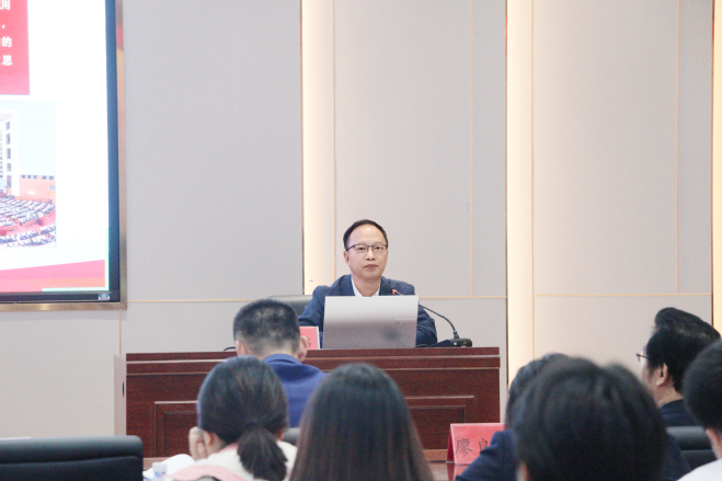 為了深學(xué)篤用習(xí)近平新時代中國特色社會主義思想和黨的二十屆三中全會精神,貫徹落實(shí)習(xí)近平總書記關(guān)于青年工作的重要思想,深化實(shí)施青年馬克思主義者培養(yǎng)工程,努力培養(yǎng)信仰堅(jiān)定、能力突出、素質(zhì)優(yōu)良、作風(fēng)過硬的大學(xué)生青年政治骨干,11月26日晚上,學(xué)校黨委書記陳良聲在圖書館104報(bào)告廳為學(xué)校“青馬工程”培訓(xùn)班做了題為《深入領(lǐng)悟新時代的世界觀和方法論,做信仰堅(jiān)定的青年馬克思主義者》的專題報(bào)告。參加報(bào)告會的還有“青馬工程”培訓(xùn)班導(dǎo)師團(tuán)成員,云浮校區(qū)通過視頻連線參加。