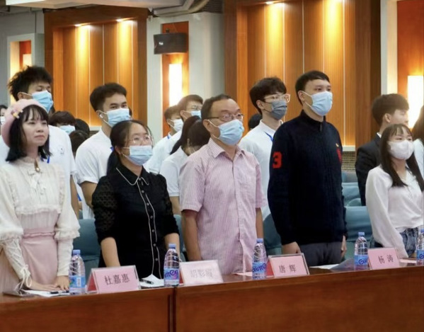 全體人員在莊嚴(yán)的國歌聲中肅立