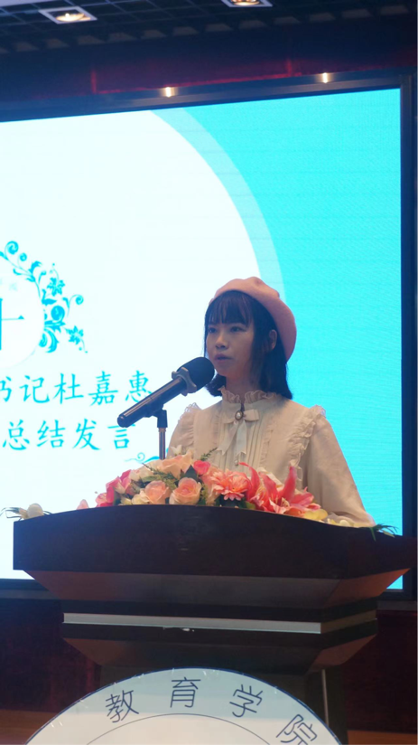 會(huì)議最后,由杜嘉惠老師做閉幕發(fā)言,本次學(xué)生代表大會(huì)充分體現(xiàn)了公開、公平、公正的干部選舉原則,為有才能的同學(xué)提供了一個(gè)展示自我的平臺,也為學(xué)校學(xué)生工作之后工作的開展備足了后備力量。此外,她還表示學(xué)生會(huì)應(yīng)進(jìn)一步激發(fā)內(nèi)生動(dòng)力,激發(fā)基層學(xué)生組織活力,不斷保持和提高學(xué)生會(huì)工作人員服務(wù)奉獻(xiàn)意識,筑造有高度、有溫度、有力度的學(xué)生會(huì)組織;牢記全心全意為同學(xué)們服務(wù)的宗旨,恪守學(xué)生本分、牢記服務(wù)宗旨、永葆理想情懷、勤勉務(wù)實(shí)做事、營造平等氛圍、摒棄庸俗習(xí)氣,杜絕官僚現(xiàn)象的產(chǎn)生,塑造清新陽光的學(xué)聯(lián)學(xué)生會(huì)組織形象。