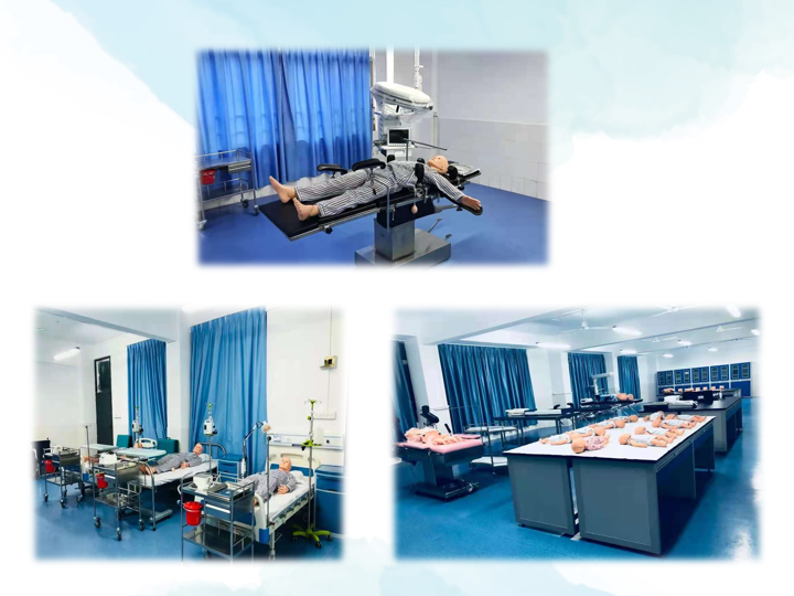 護(hù)理應(yīng)用解剖學(xué)實(shí)訓(xùn)室、機(jī)能與形態(tài)學(xué)實(shí)訓(xùn)室、基礎(chǔ)護(hù)理學(xué)實(shí)訓(xùn)室、健康評(píng)估與內(nèi)科護(hù)理學(xué)實(shí)訓(xùn)室、外科護(hù)理學(xué)實(shí)訓(xùn)室、婦產(chǎn)科護(hù)理學(xué)實(shí)訓(xùn)室、兒科護(hù)理學(xué)實(shí)訓(xùn)室、急危重癥護(hù)理學(xué)實(shí)驗(yàn)、康復(fù)護(hù)理學(xué)實(shí)訓(xùn)室等