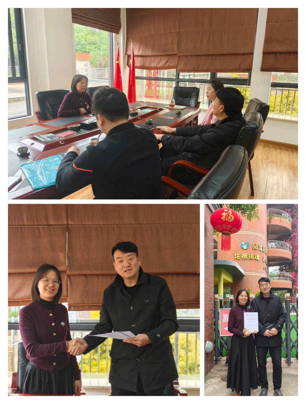 霍園長(zhǎng)對(duì)馬院長(zhǎng)的觀點(diǎn)表示高度認(rèn)同,并圍繞 “用良知做教育,給孩子一個(gè)回歸自然的幼兒園” 這一理念,分享了見龍幼兒園的辦園歷程。見龍幼兒園以蒙臺(tái)梭利幼兒教育為特色,主張回歸教育本質(zhì),把培養(yǎng)孩子的自主性、專注力和創(chuàng)造力放在首位?;魣@長(zhǎng)提到,盡管當(dāng)前學(xué)前教育行業(yè)面臨生源逐年遞減的困境,但優(yōu)質(zhì)的學(xué)前教育資源仍十分緊缺,所以辦園更要著眼未來(lái),為孩子們筑牢成長(zhǎng)根基。基于共同的教育愿景,雙方就校企合作事宜展開了深入探討。從學(xué)生實(shí)習(xí)實(shí)踐的細(xì)節(jié)安排,到聯(lián)合教學(xué)研究的方向規(guī)劃,各抒己見、坦誠(chéng)交流,在友好熱烈的氛圍中達(dá)成合作意向。