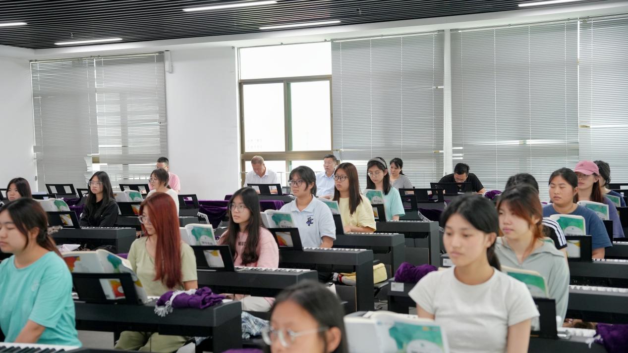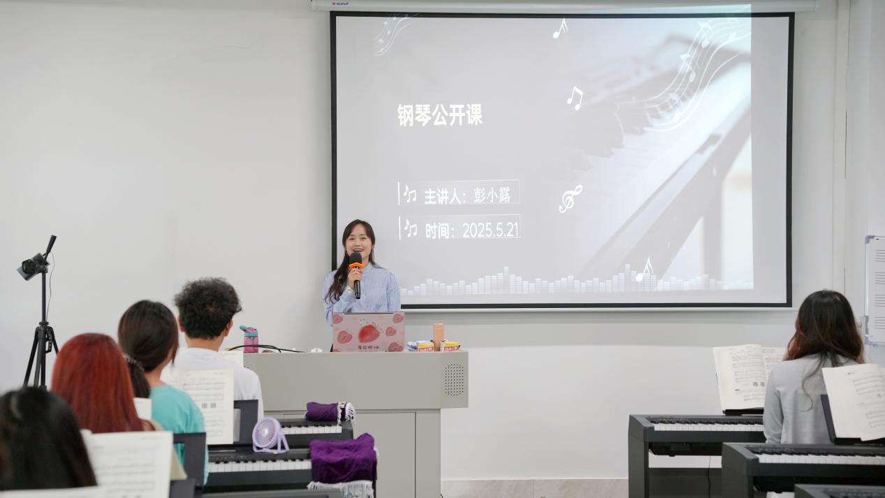 5月21日下午,彭小露老師的《鋼琴基礎(chǔ)》公開課在科技樓902教室開講。彭老師憑借豐富的教學(xué)經(jīng)驗(yàn),以生動(dòng)有趣的方式講解鋼琴基礎(chǔ)知識(shí),從識(shí)譜到指法訓(xùn)練,循序漸進(jìn)、耐心細(xì)致。課堂中,她巧妙運(yùn)用多媒體教學(xué)手段,將抽象的音樂理論形象化、具體化,不僅能讓學(xué)生們輕松掌握鋼琴演奏的基本技能,更能培養(yǎng)學(xué)生們的音樂審美能力和藝術(shù)表現(xiàn)力,為學(xué)生們今后從事學(xué)前教育工作打下堅(jiān)實(shí)基礎(chǔ)。