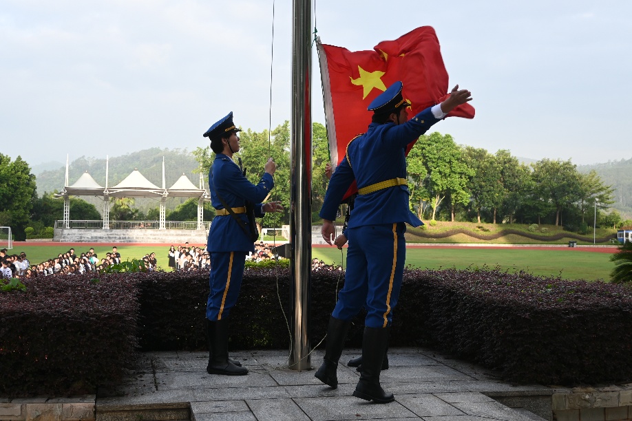 金秋送爽,丹桂飄香,紅旗飄揚,在中華人民共和國成立76周年之際的光輝時刻,我校教育學(xué)院于9月29日清晨舉行了升旗儀式。師生們齊聚一堂,共同參加這次莊嚴的升旗儀式,以最飽滿的熱情迎接這一屬于全體中華兒女的偉大節(jié)日,向祖國母親深情告白,獻上最真摯的熱愛與祝福。
