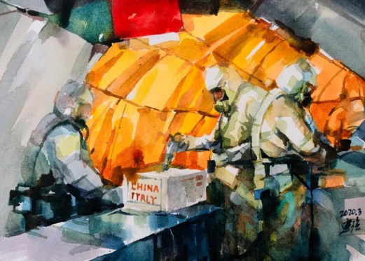 董建強(qiáng)《中國(guó)當(dāng)擔(dān)》水彩畫(huà)2020年